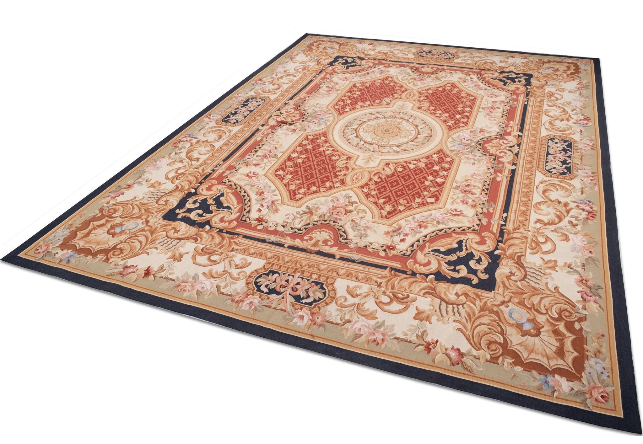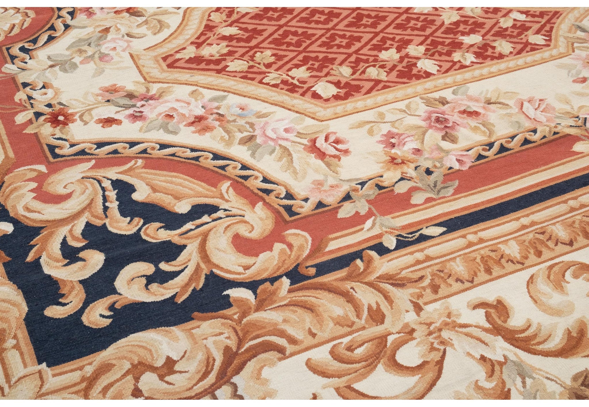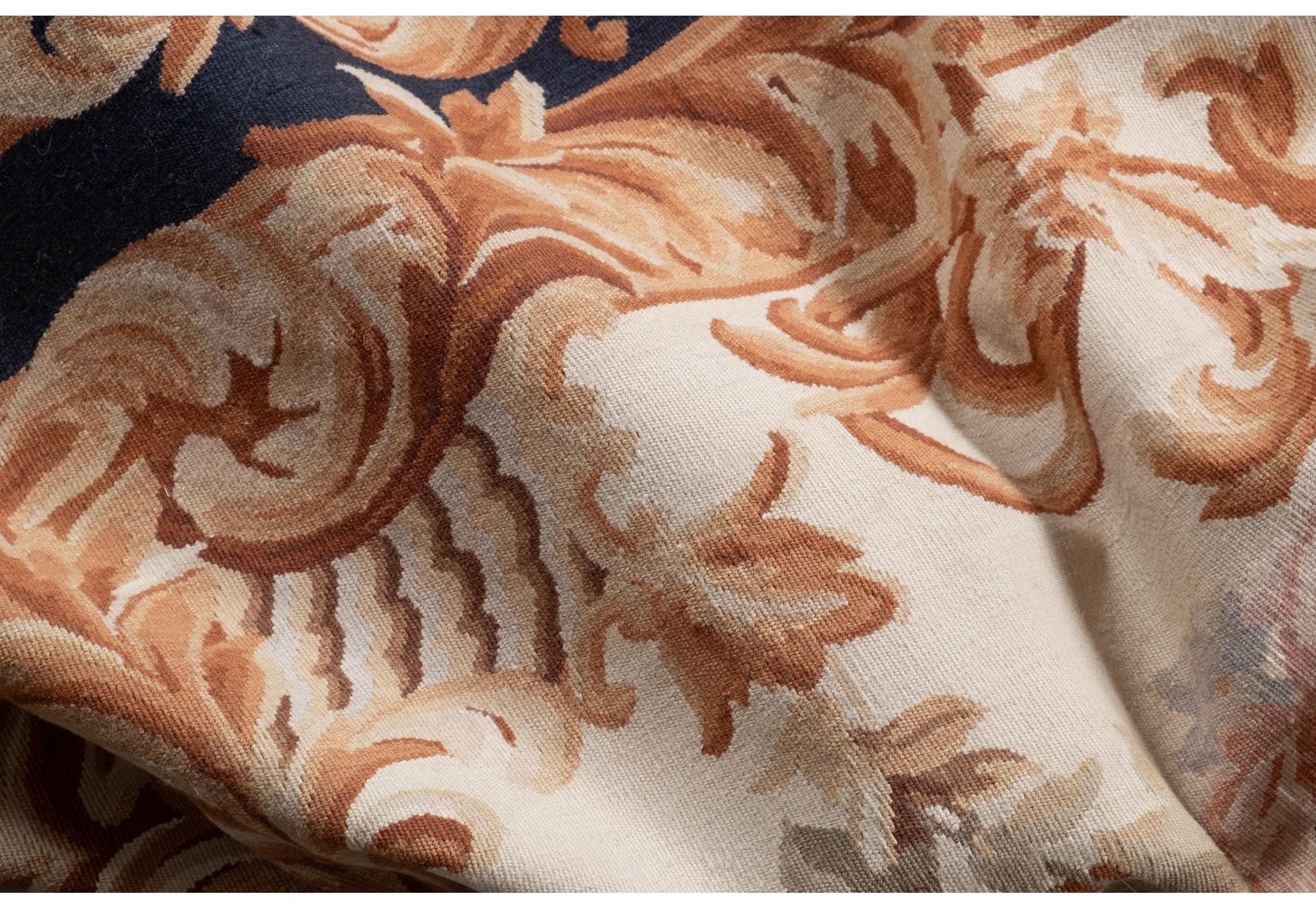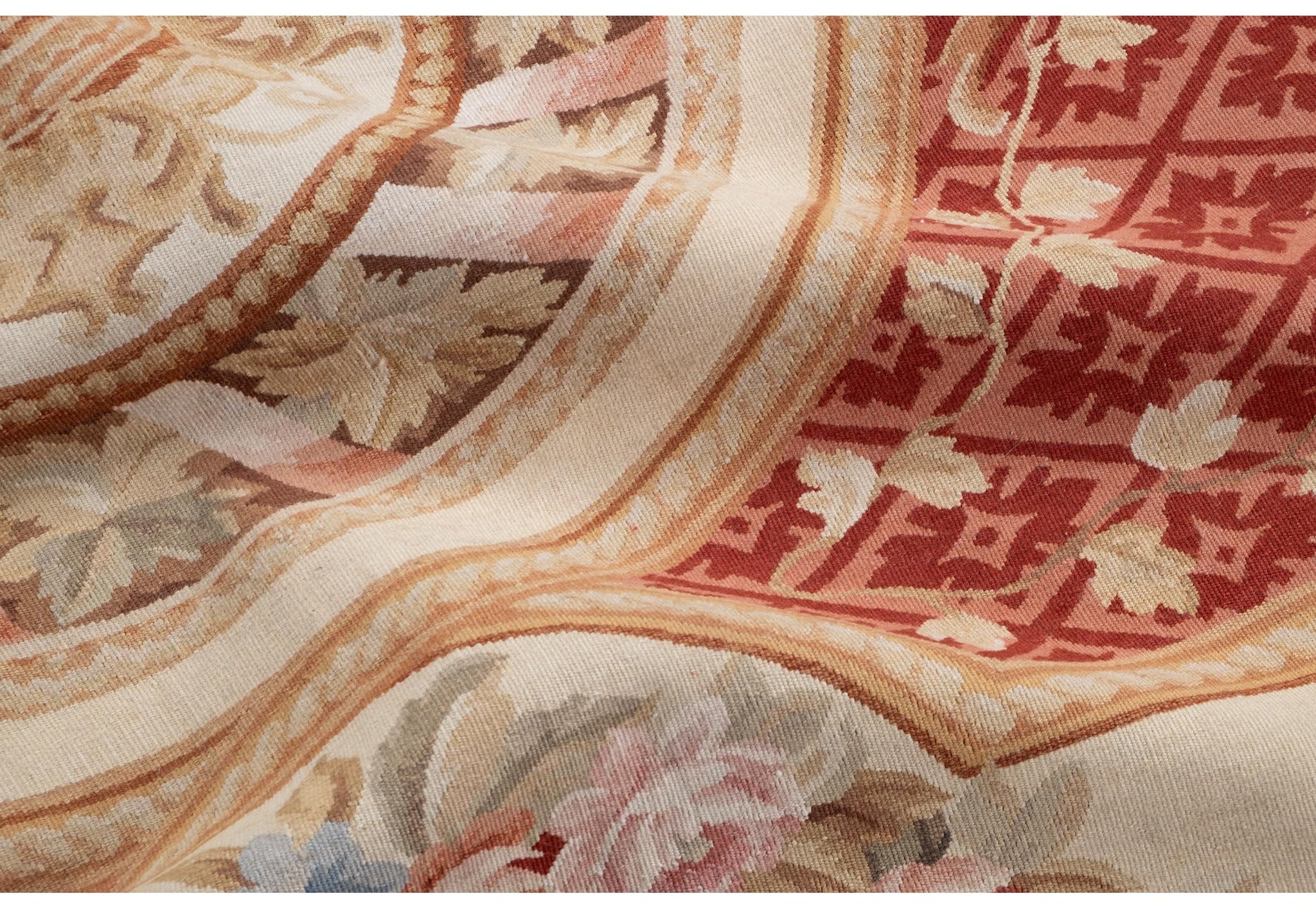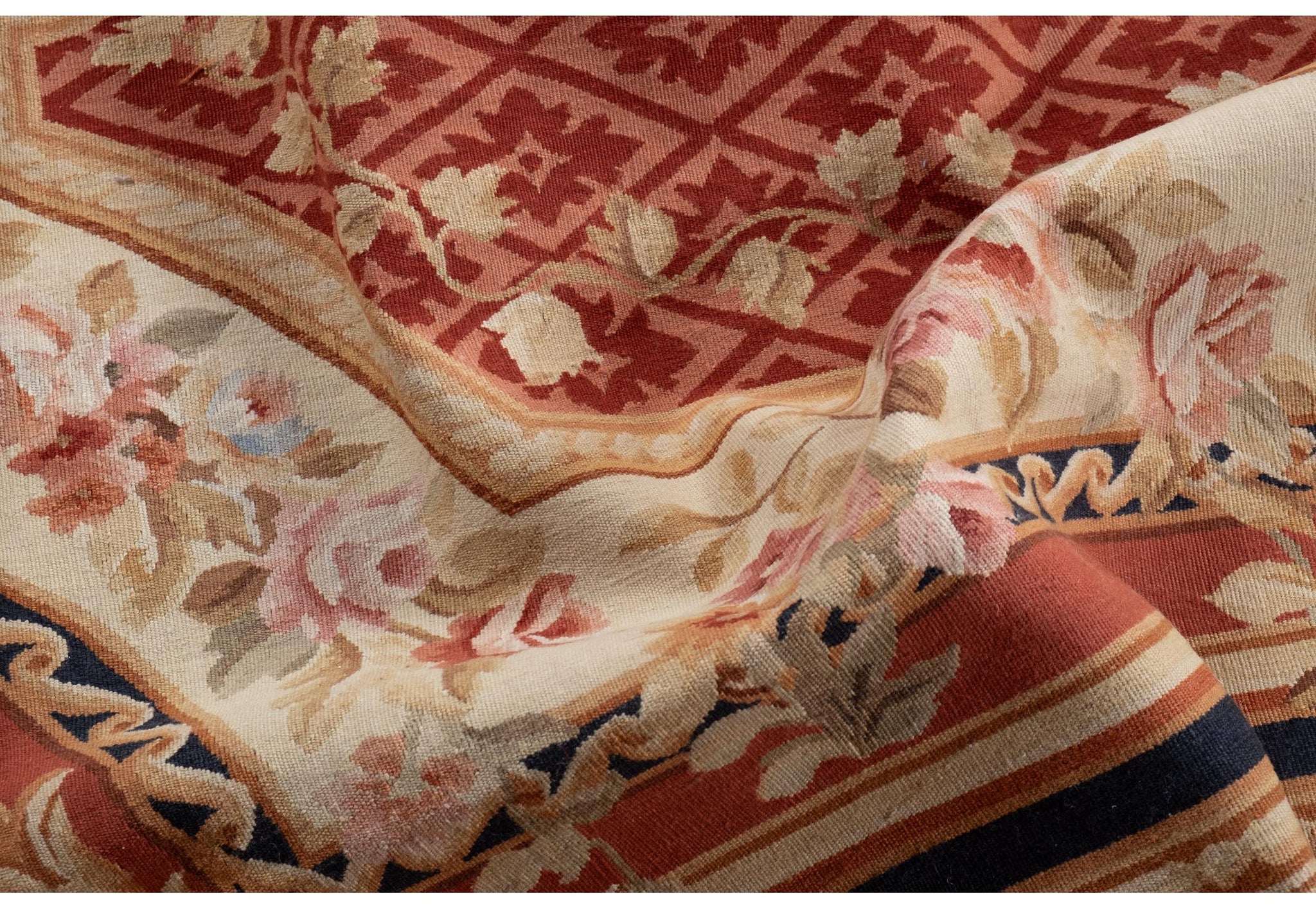 Alla metà dell’800 quando, per vari motivi, i famosi tappeti Savonerie non erano molto disponibili in Europa e in particolare in Francia, si è cominciato a produrre tappeti con gli stessi disegni ma senza pelo ossia con il nodo piatto. Erano tessuti da pavimento di grande taglio ricamati con disegni tendenzialmente rinascimentali
