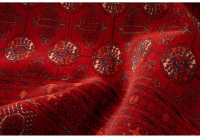 I tappeti Bukhara sono generalmente rossi a disegno perpetuo composto da stemmi tribali dei Turcomanni (Tamgha). Sono annodati in una vasta regione dell’Asia centro-meridionale, ognuno con il proprio nome, e i migliori sono quelli prodotti in Turkmenistan. In Iran sono riconosciuti come Turcomanni.\ncaratteristiche tecniche: Nodo simmetrico, ordito in lana, trama doppia