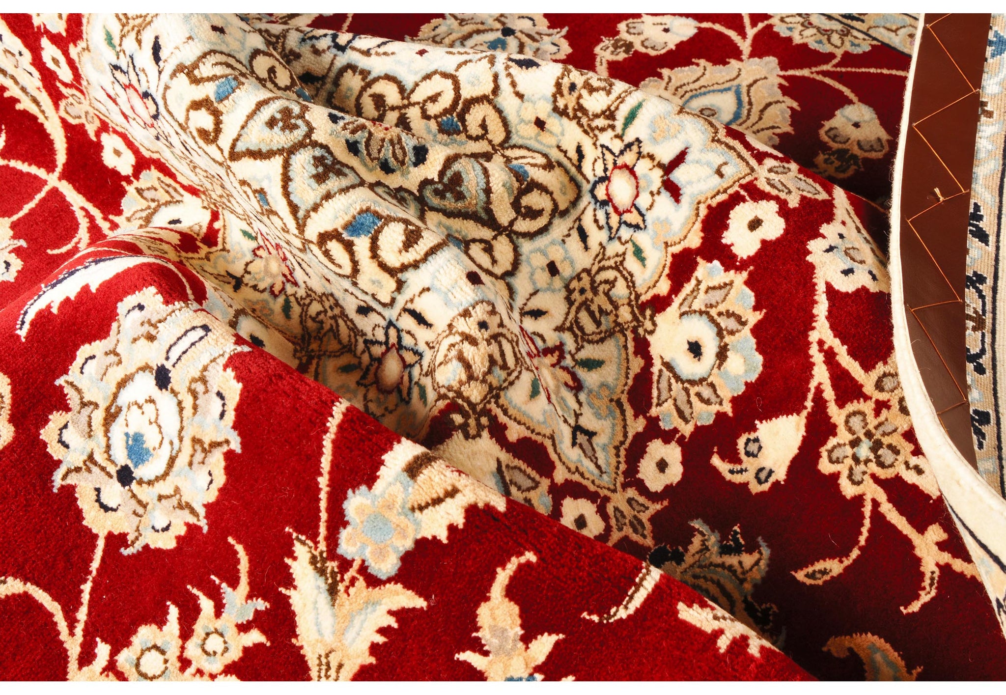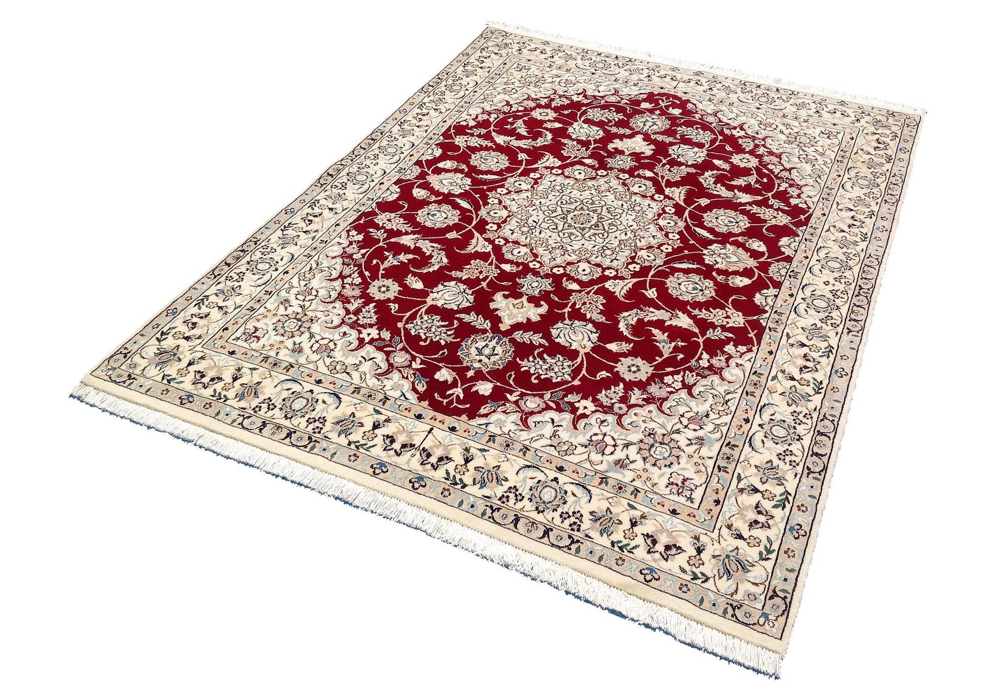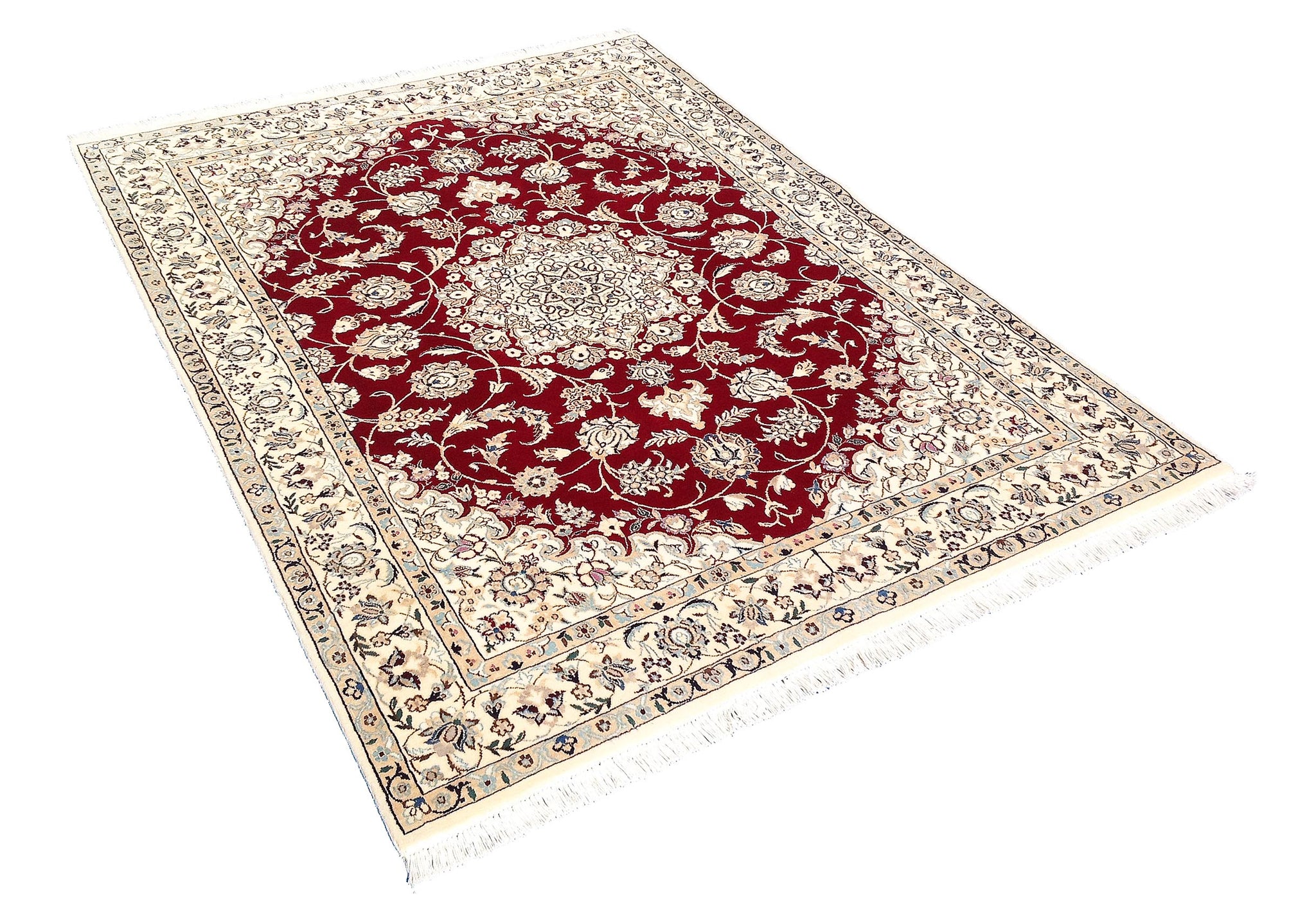La produzione di questi tappeti avviene non solo nell'omonima provincia di Nain - nella zona centrale dell'Iran - ma, per la grande richiesta del mercato, è delocalizzata anche nelle province limitrofe.\nBuona lana mista a seta, pochi colori brillanti con prevalenza di sfumature Blue e beige e bellissimi disegni collocano i Nain tra i tappeti persiani più venduti.\nI tappeti 9 LA sono la categoria media di tappeti Nain e, fra questi, sono quelli più venduti.\nCaratteristiche tecniche: Nodo asimmetrico di lana misto a seta, ordito in cotone, trama singola