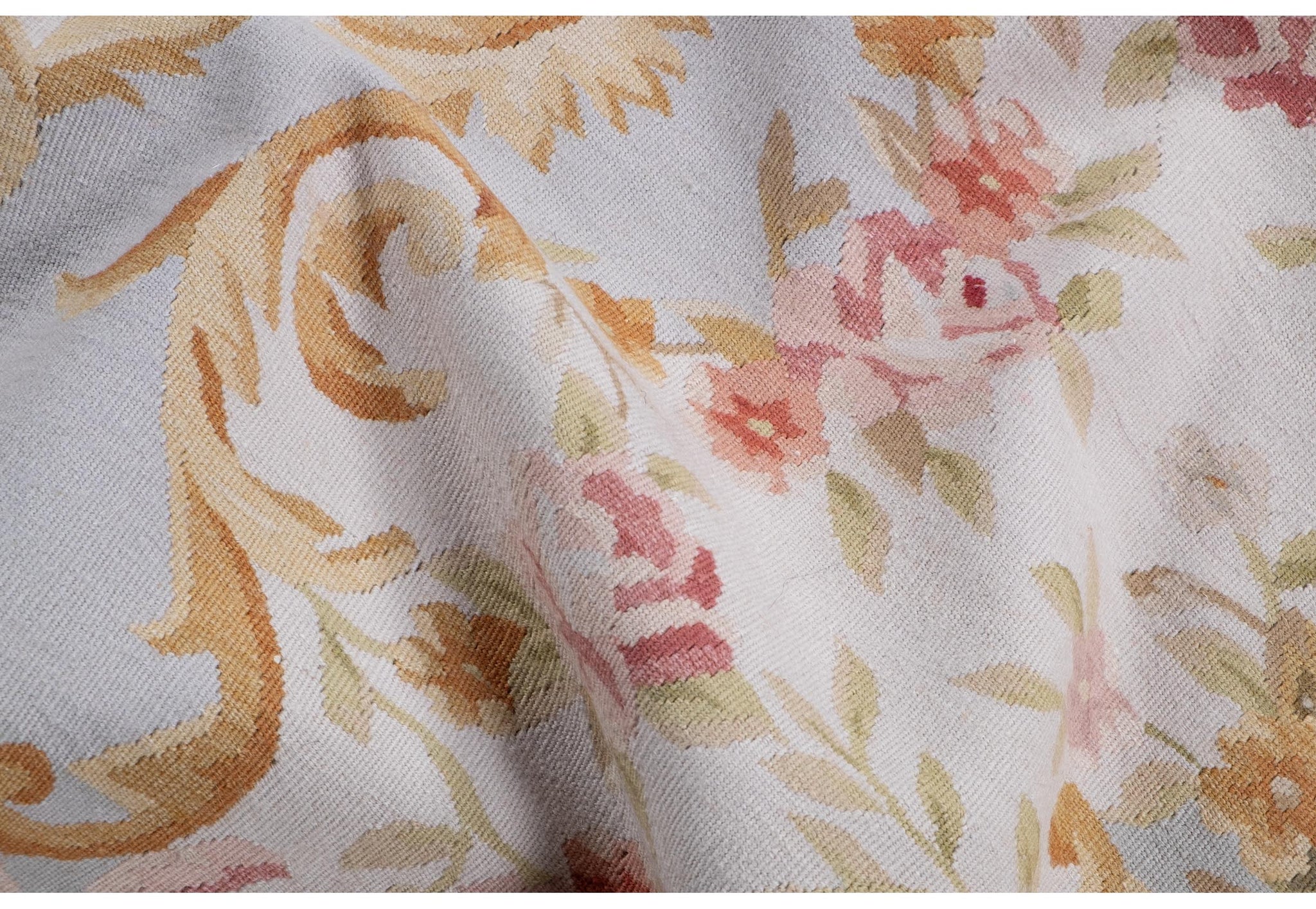 Alla metà dell’800 quando, per vari motivi, i famosi tappeti Savonerie non erano molto disponibili in Europa e in particolare in Francia, si è cominciato a produrre tappeti con gli stessi disegni ma senza pelo ossia con il nodo piatto. Erano tessuti da pavimento di grande taglio ricamati con disegni tendenzialmente rinascimentali