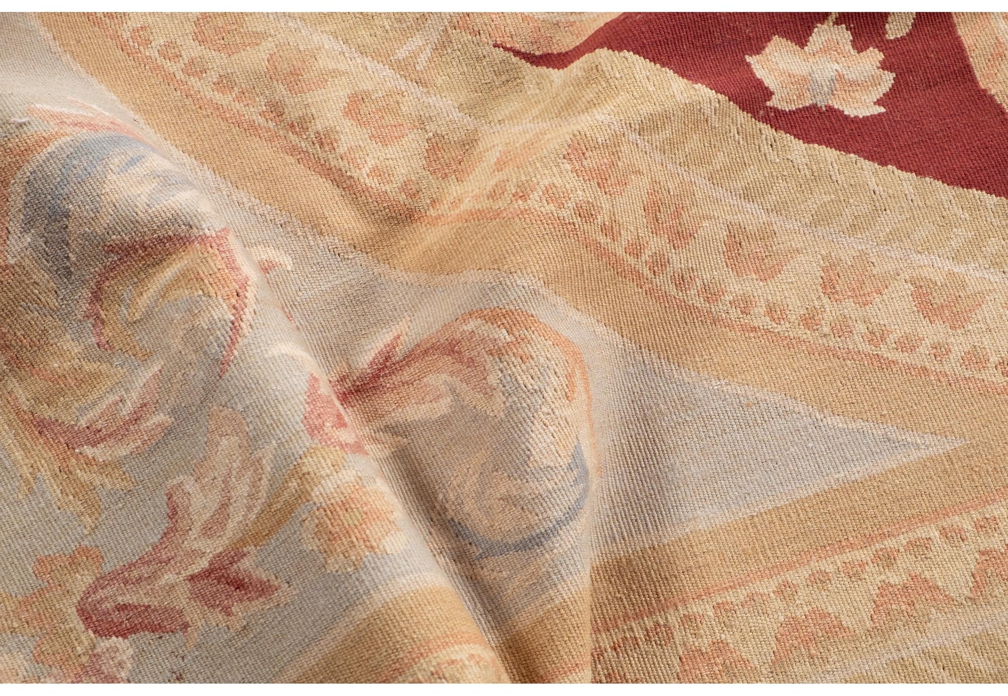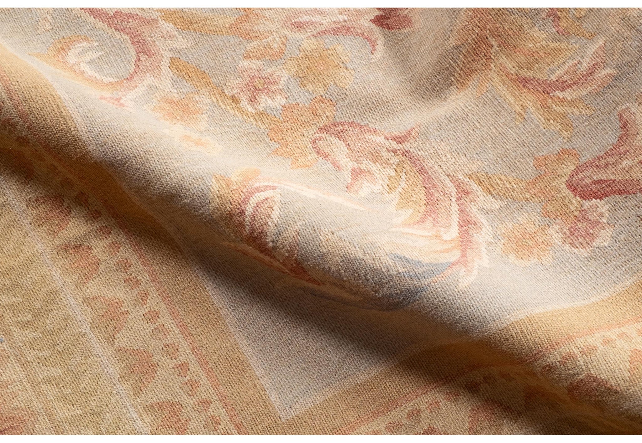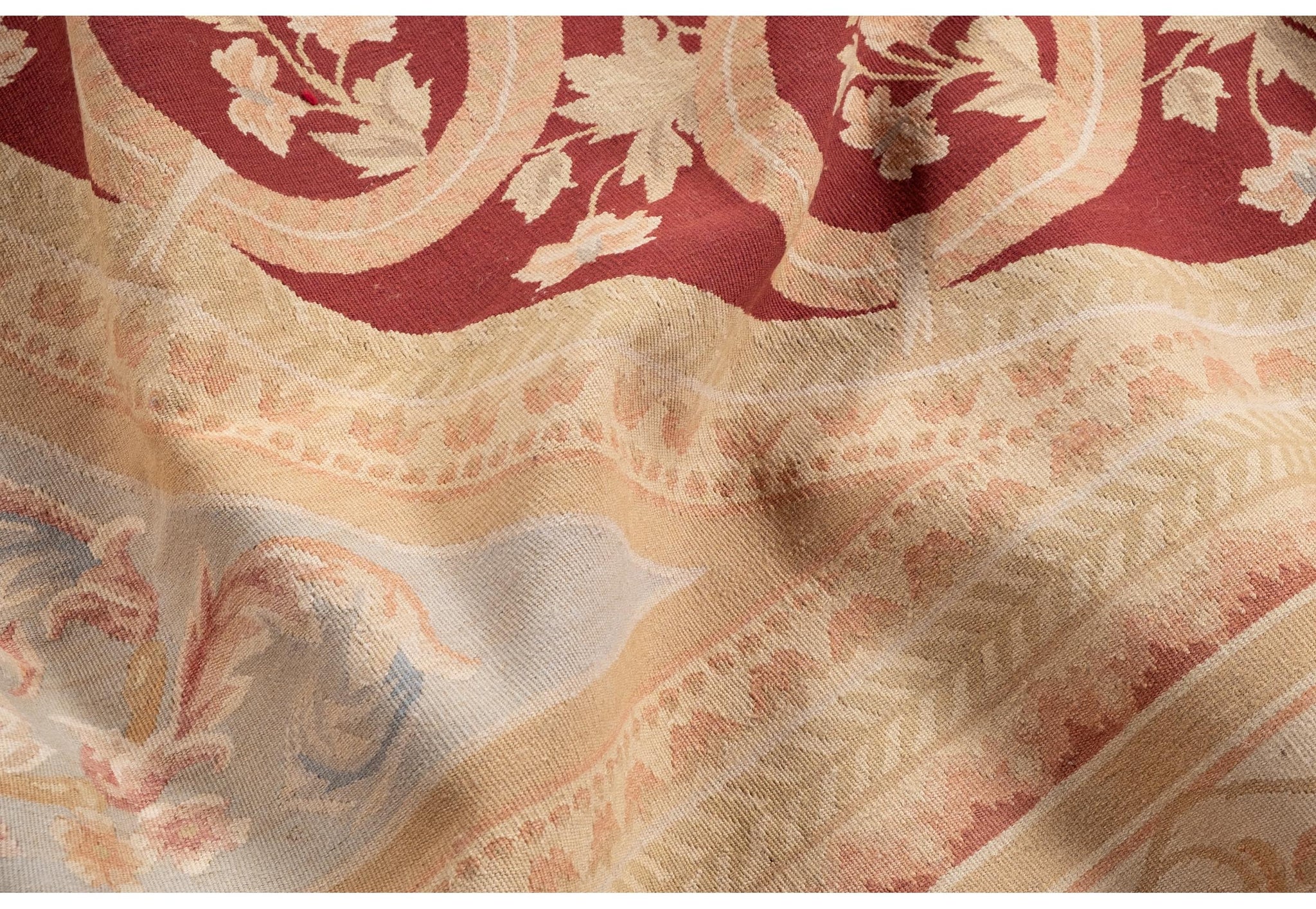 Alla metà dell’800 quando, per vari motivi, i famosi tappeti Savonerie non erano molto disponibili in Europa e in particolare in Francia, si è cominciato a produrre tappeti con gli stessi disegni ma senza pelo ossia con il nodo piatto. Erano tessuti da pavimento di grande taglio ricamati con disegni tendenzialmente rinascimentalimarjan