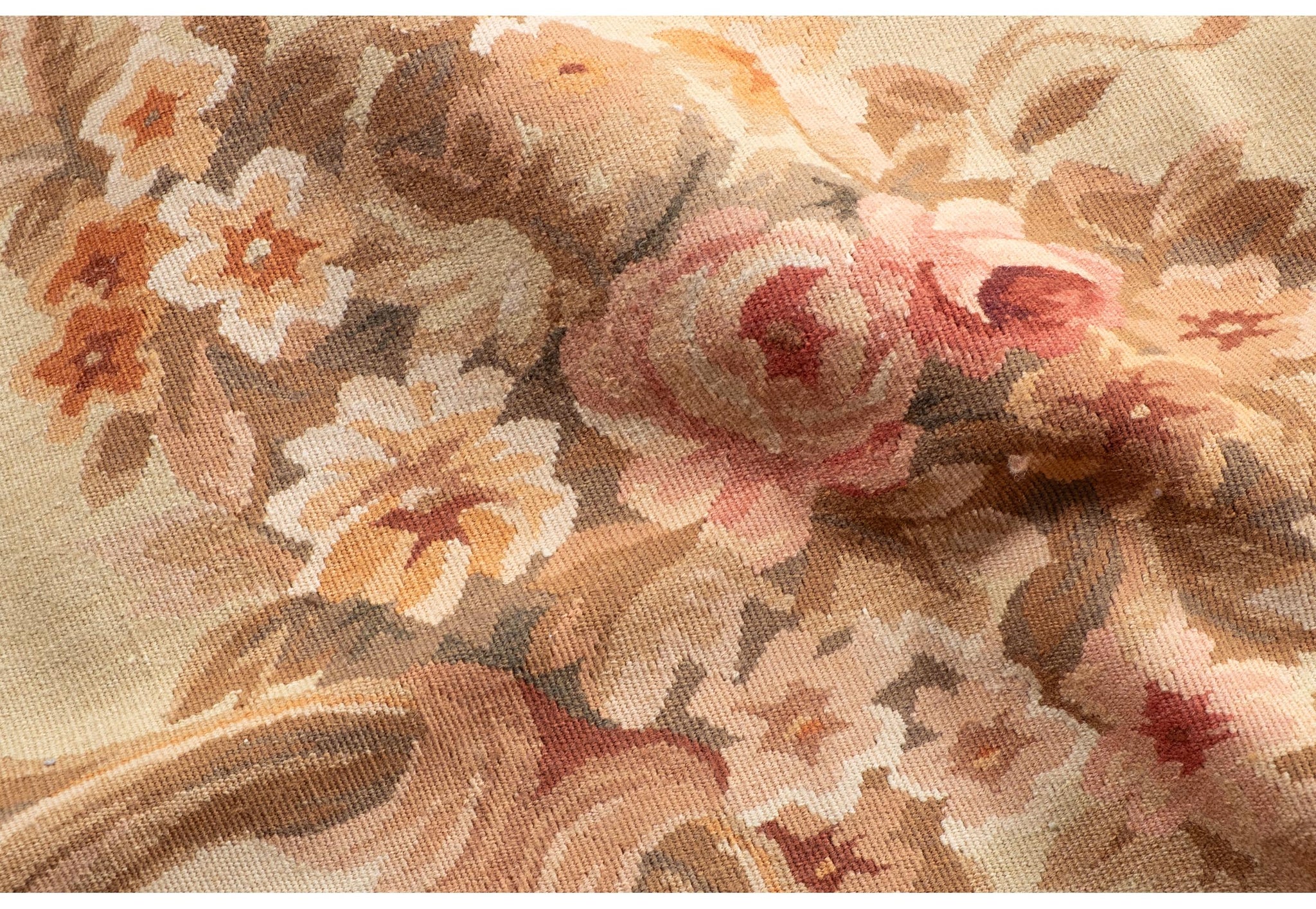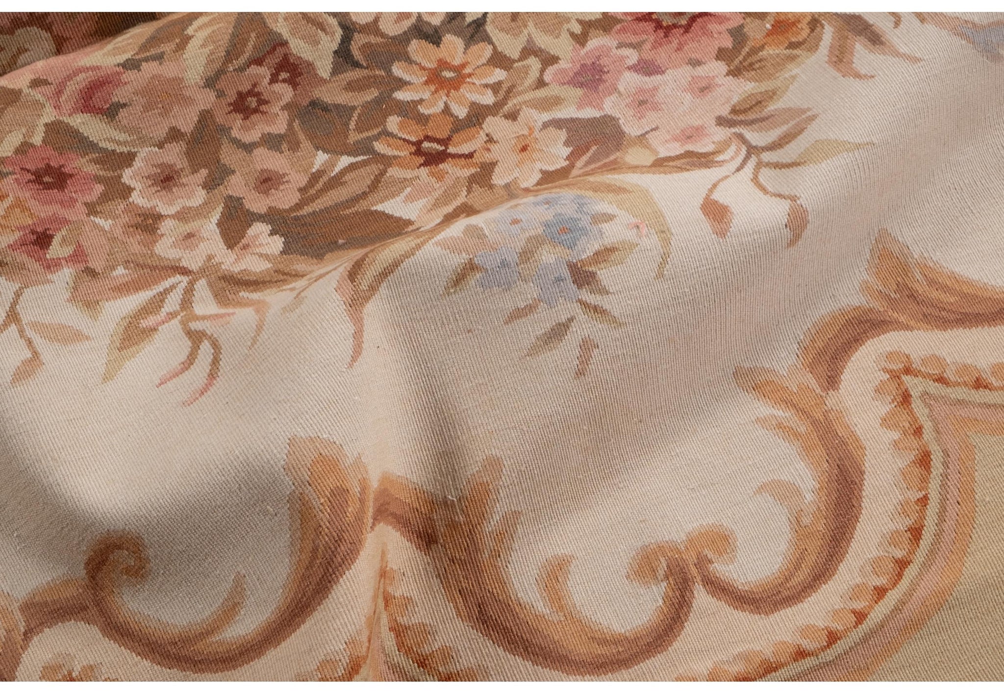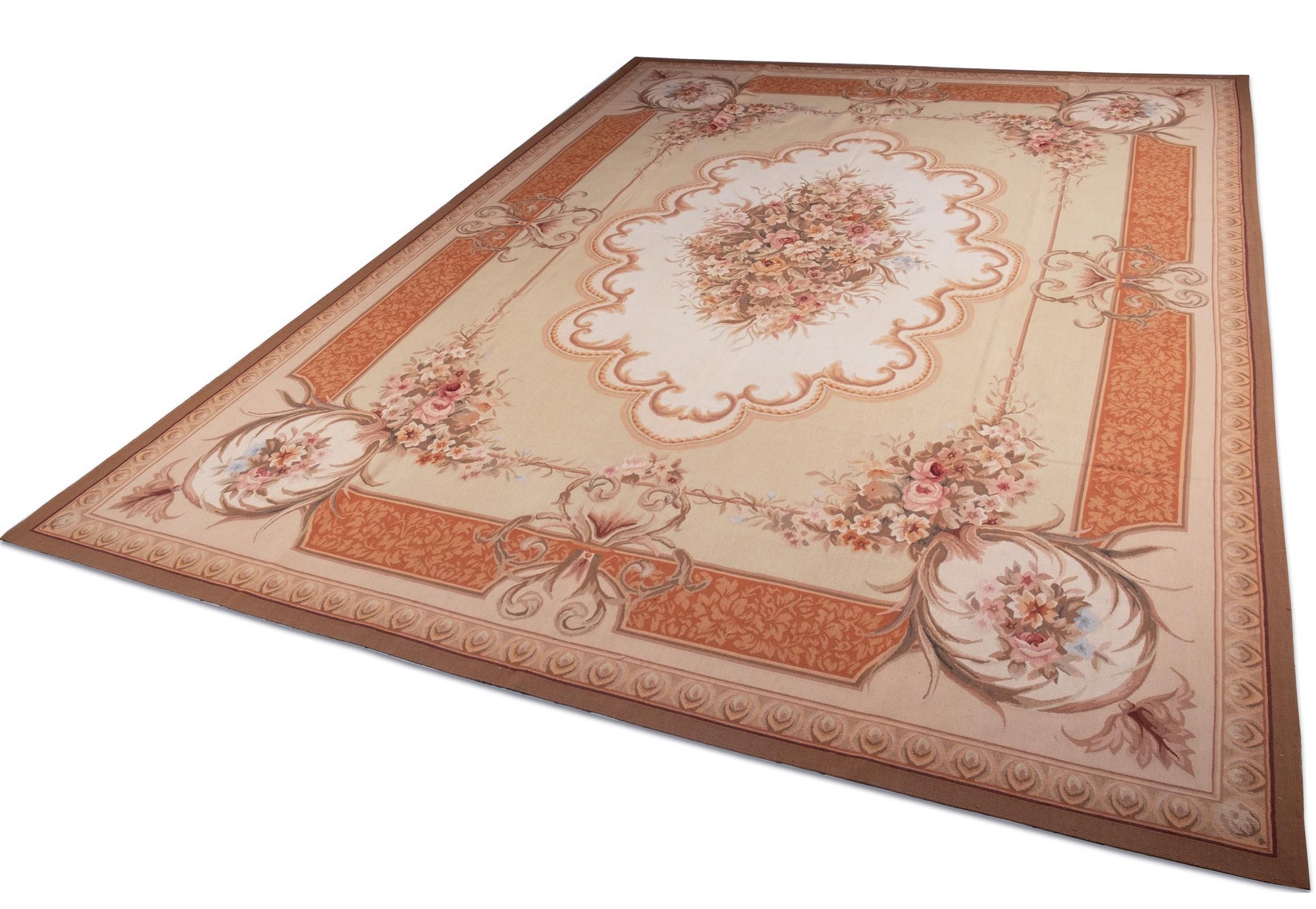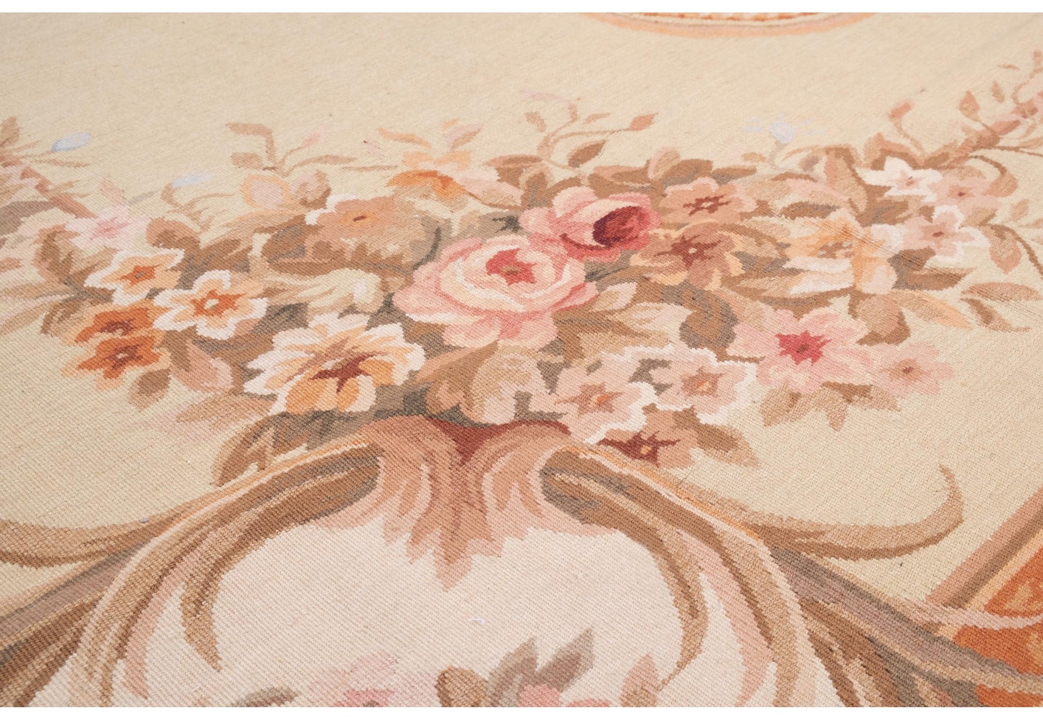 Alla metà dell’800 quando, per vari motivi, i famosi tappeti Savonerie non erano molto disponibili in Europa e in particolare in Francia, si è cominciato a produrre tappeti con gli stessi disegni ma senza pelo ossia con il nodo piatto. Erano tessuti da pavimento di grande taglio ricamati con disegni tendenzialmente rinascimentali