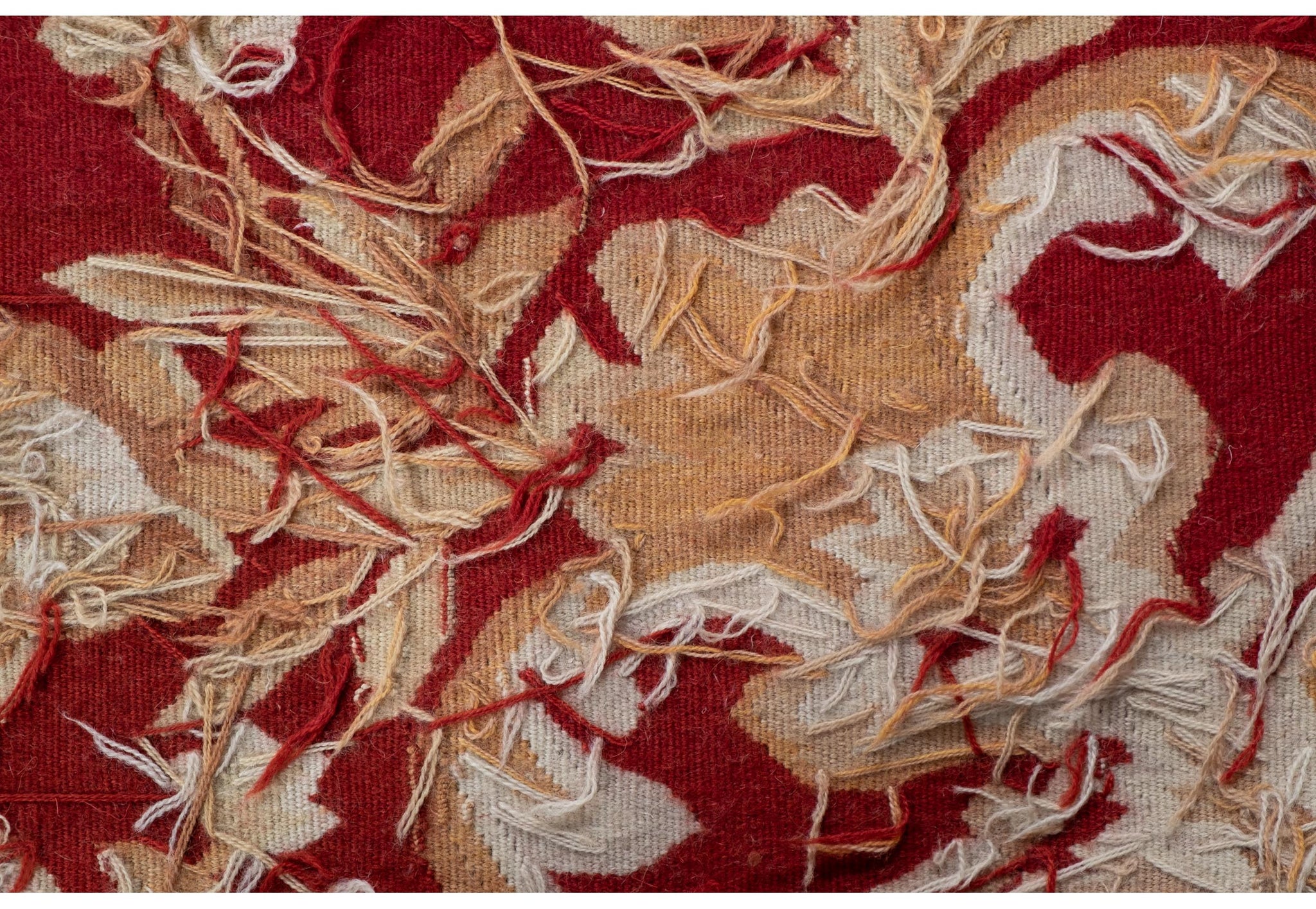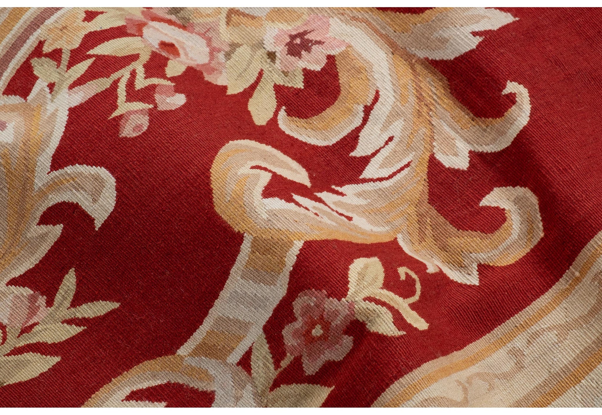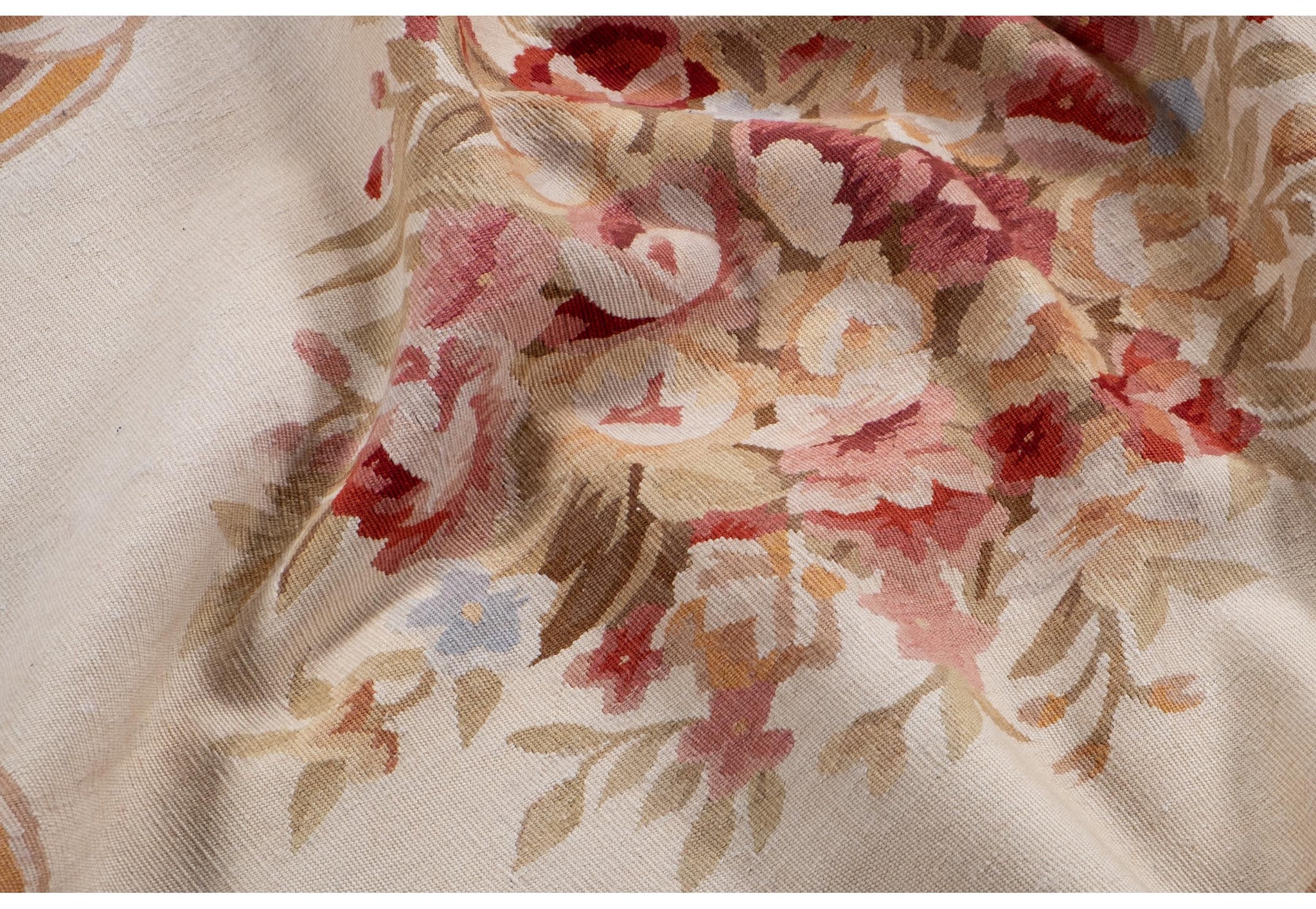 Alla metà dell’800 quando, per vari motivi, i famosi tappeti Savonerie non erano molto disponibili in Europa e in particolare in Francia, si è cominciato a produrre tappeti con gli stessi disegni ma senza pelo ossia con il nodo piatto. Erano tessuti da pavimento di grande taglio ricamati con disegni tendenzialmente rinascimentali