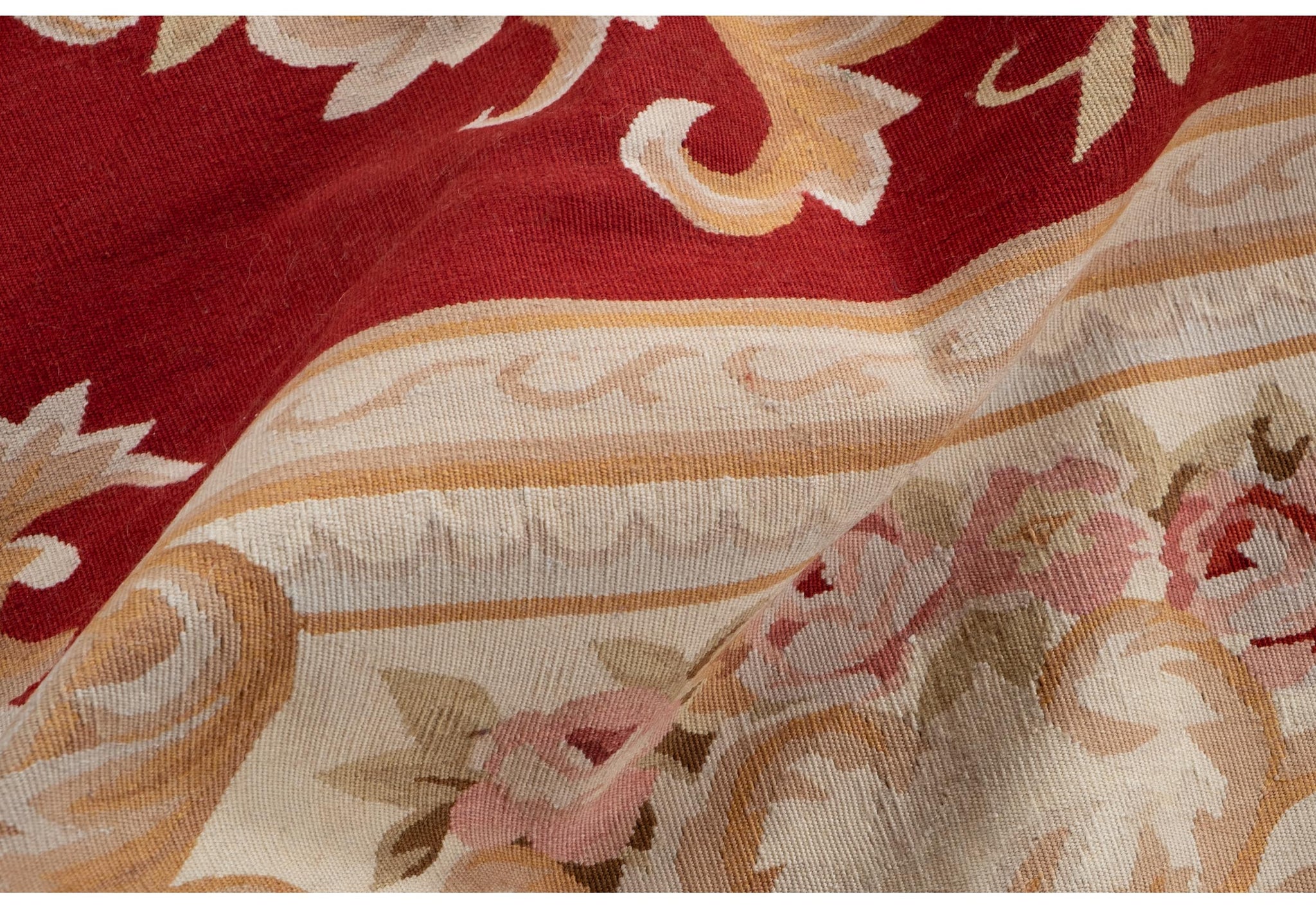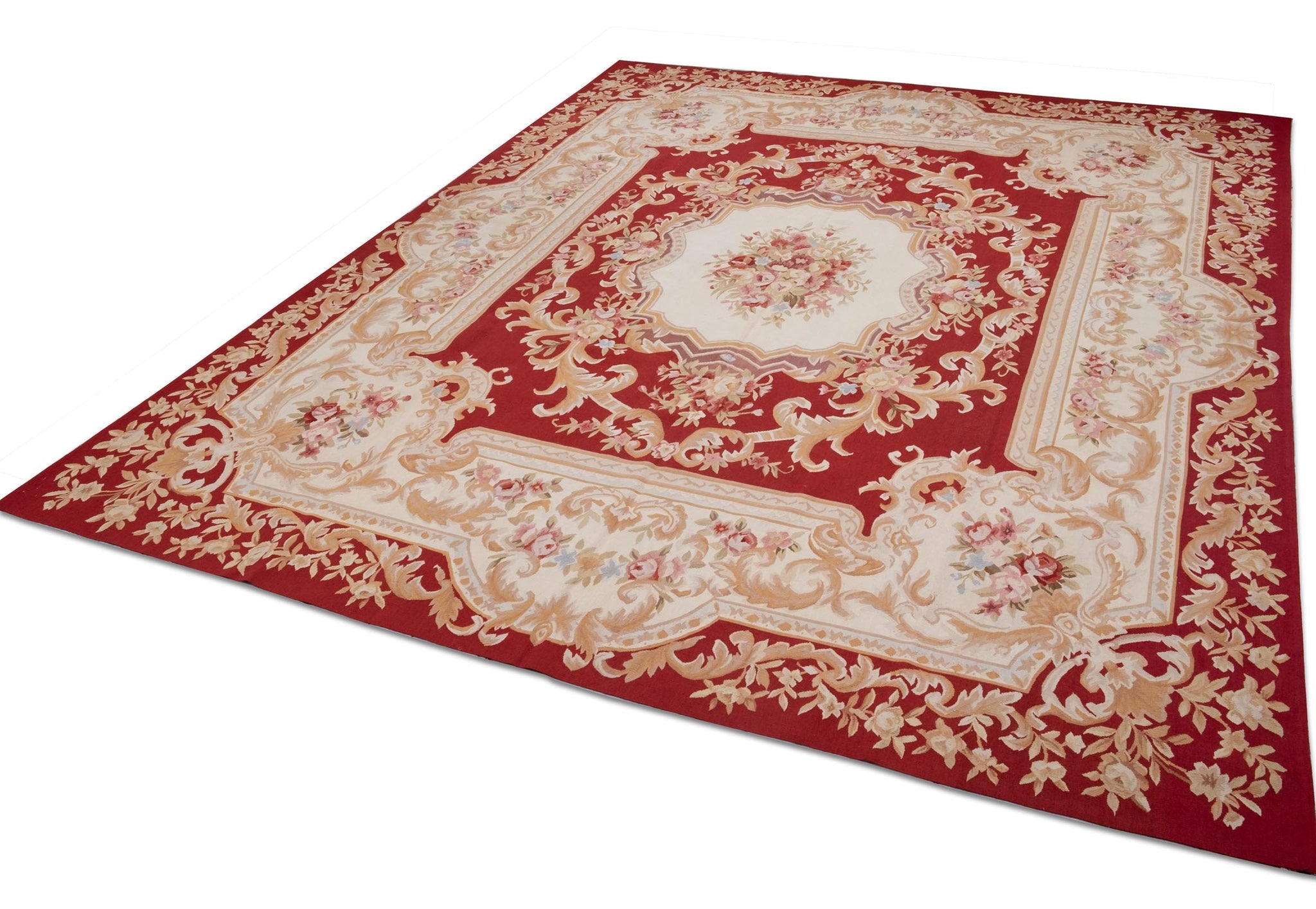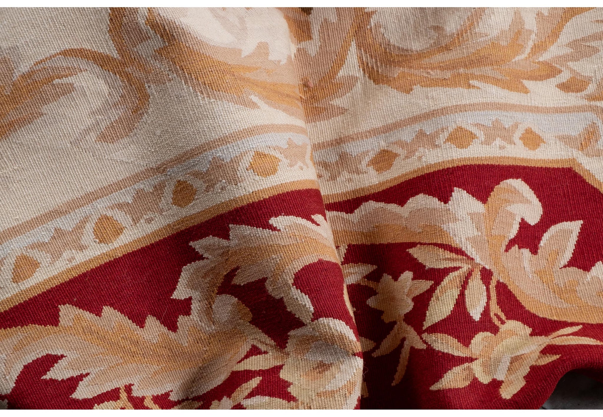 Alla metà dell’800 quando, per vari motivi, i famosi tappeti Savonerie non erano molto disponibili in Europa e in particolare in Francia, si è cominciato a produrre tappeti con gli stessi disegni ma senza pelo ossia con il nodo piatto. Erano tessuti da pavimento di grande taglio ricamati con disegni tendenzialmente rinascimentali