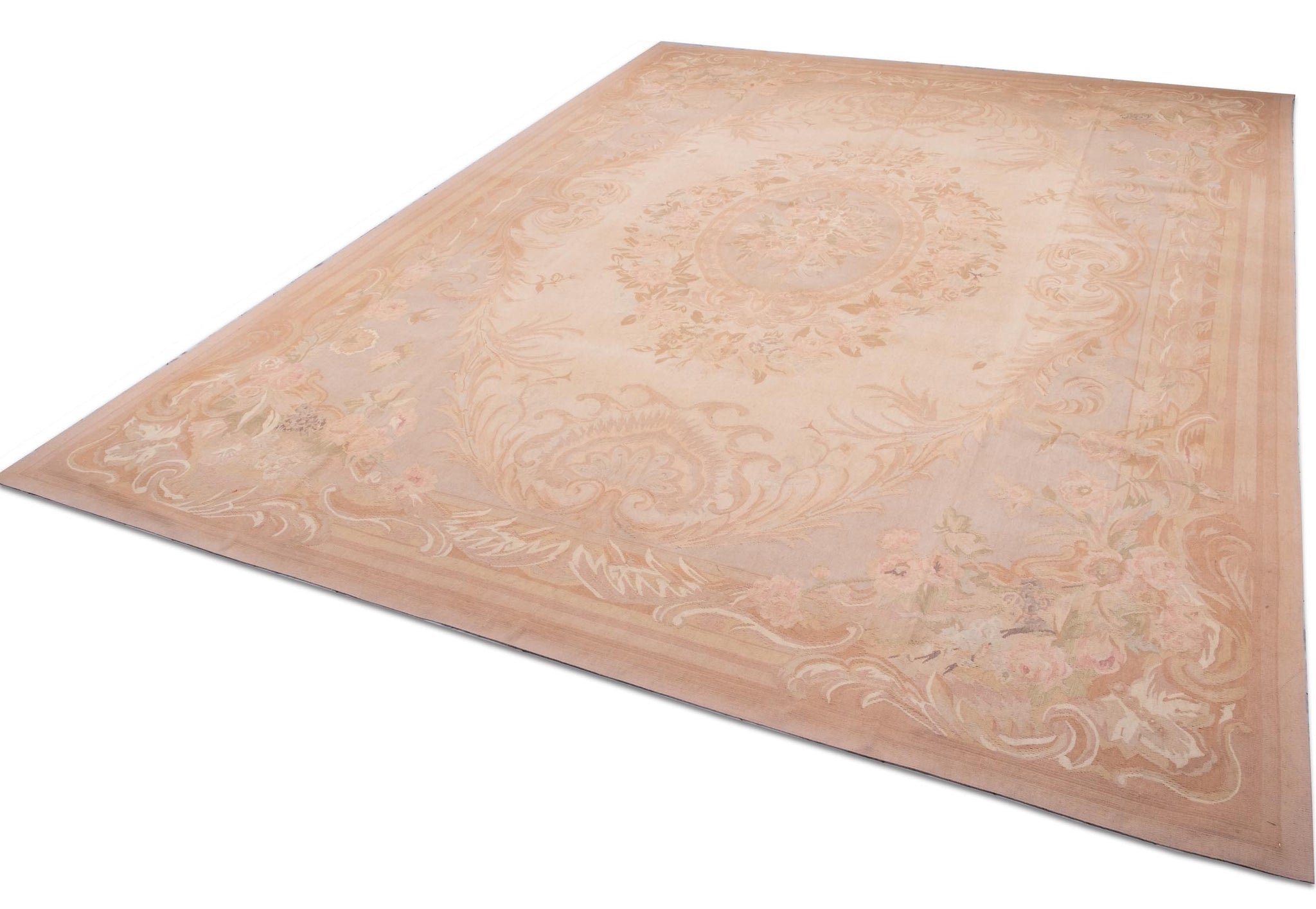 Alla metà dell’800 quando, per vari motivi, i famosi tappeti Savonerie non erano molto disponibili in Europa e in particolare in Francia, si è cominciato a produrre tappeti con gli stessi disegni ma senza pelo ossia con il nodo piatto. Erano tessuti da pavimento di grande taglio ricamati con disegni tendenzialmente rinascimentali