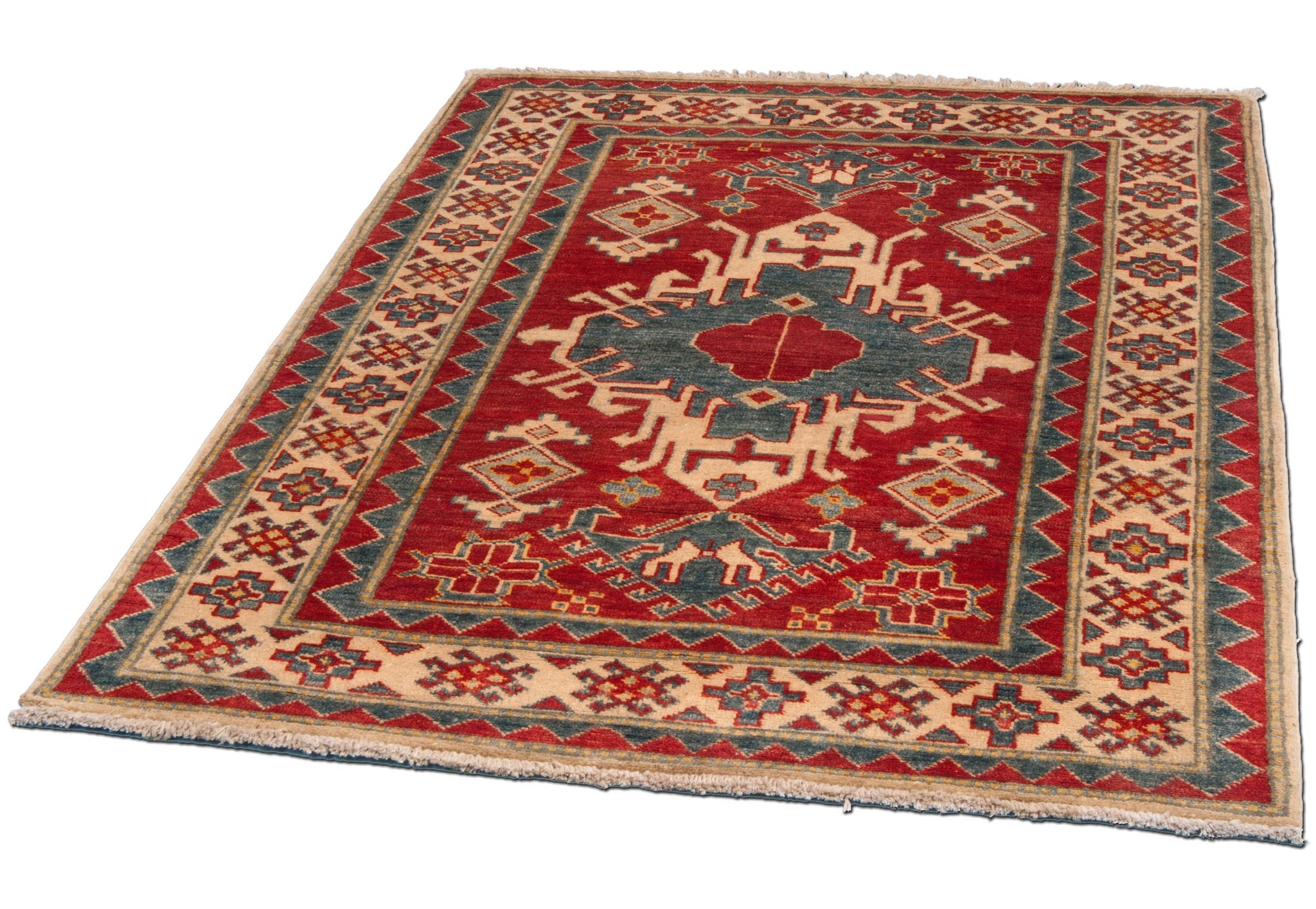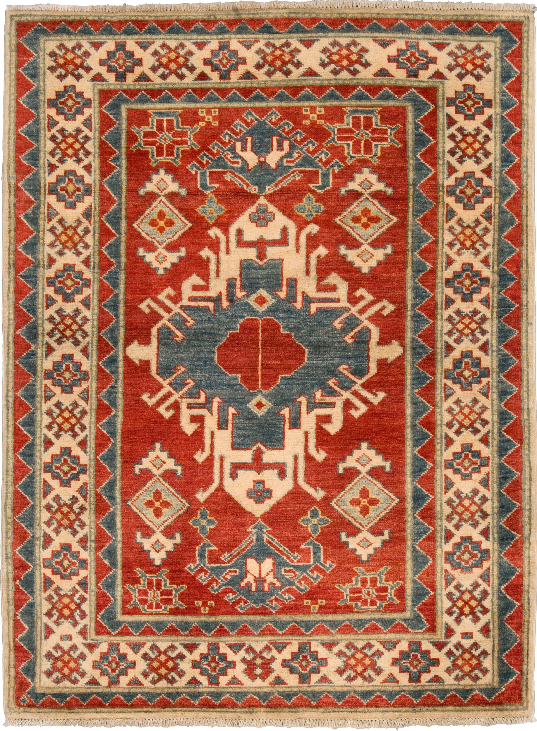 IL nome Kazak (Caucasico) indica tappeti con disegni concepiti interpretando in chiave moderna i disegni caucasici. E' prodotto in diverse categorie totalmente in lana con colori vegetali. \nE' un prodotto Afghano-Pakistano