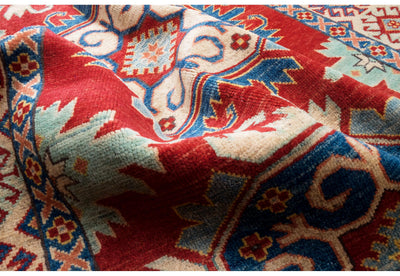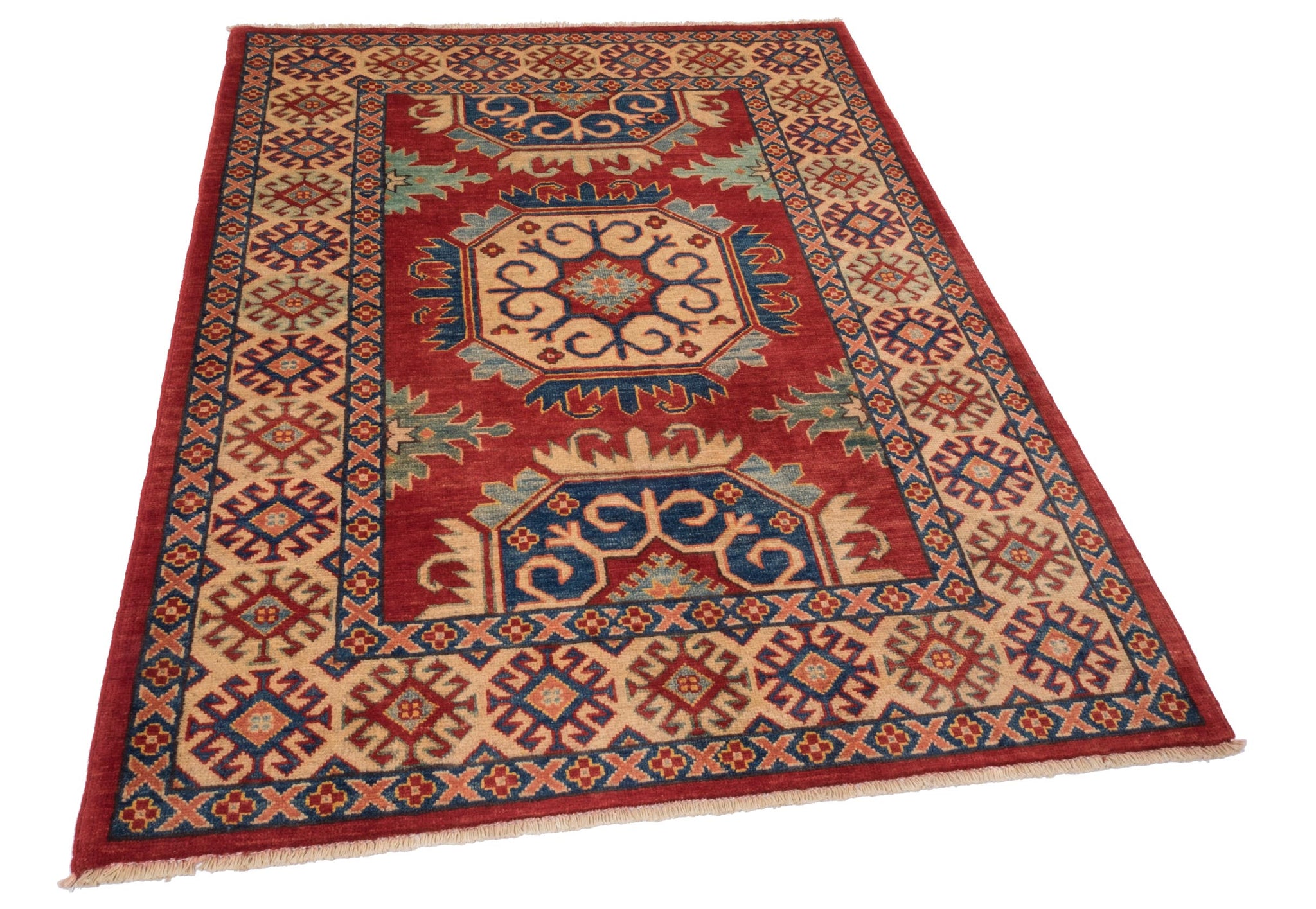 IL nome Kazak (Caucasico) indica tappeti con disegni concepiti interpretando in chiave moderna i disegni caucasici. E' prodotto in diverse categorie totalmente in lana con colori vegetali. \nE' un prodotto Afghano-Pakistano