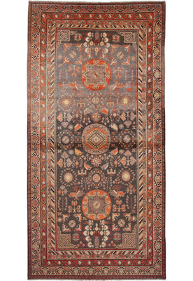 Sotto il nome Khotan sono classificati i tappeti antichi di queste due regioni abbastanza simili. Pieni di codici e simboli etici e religiosi, questi tappeti, sobri e leggeri, sono di grande impatto decorativo.\nAttualmente esistono dei tappeti di nuova produzione afghana con disegno Khotan reinterpretato in chiavo moderna