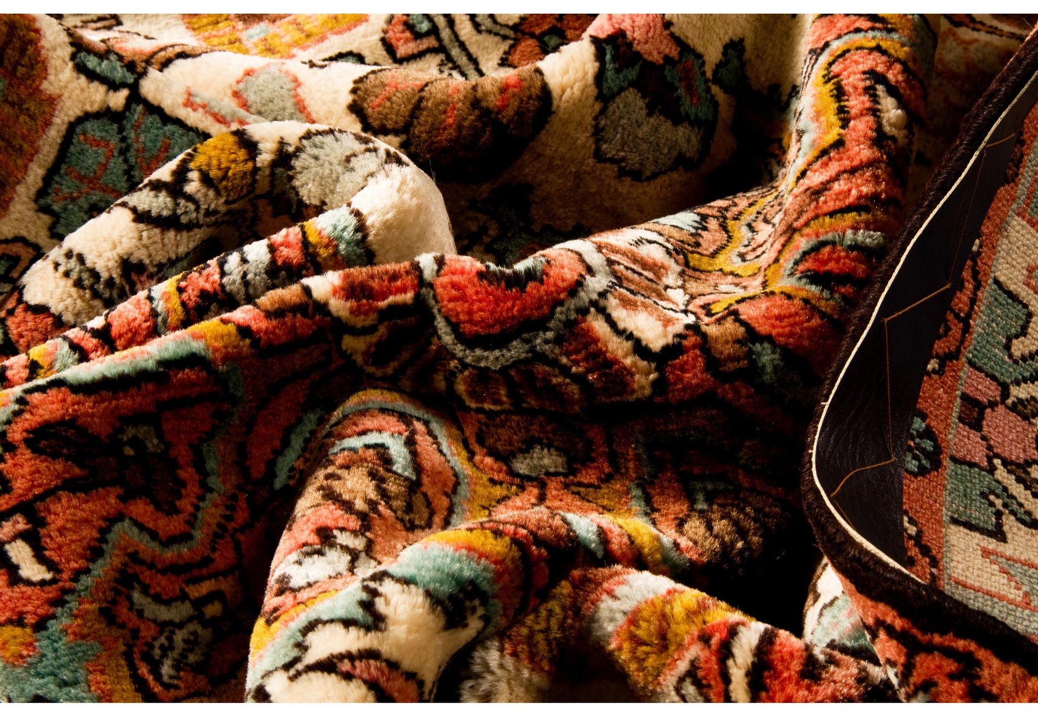 Tappeti Nahavand sono facilmente riconoscibili da suoi tipici disegni, elaborati e privi di arabesche al posto delle quali usano le volte composte da segmenti, ma anche dalla lana molto morbida e brillane, vello alto e colori solari e molto bene combinati.\nCaratteristiche tecniche: nodo è simmetrico in lana e l’ordito e trama singola in cotone