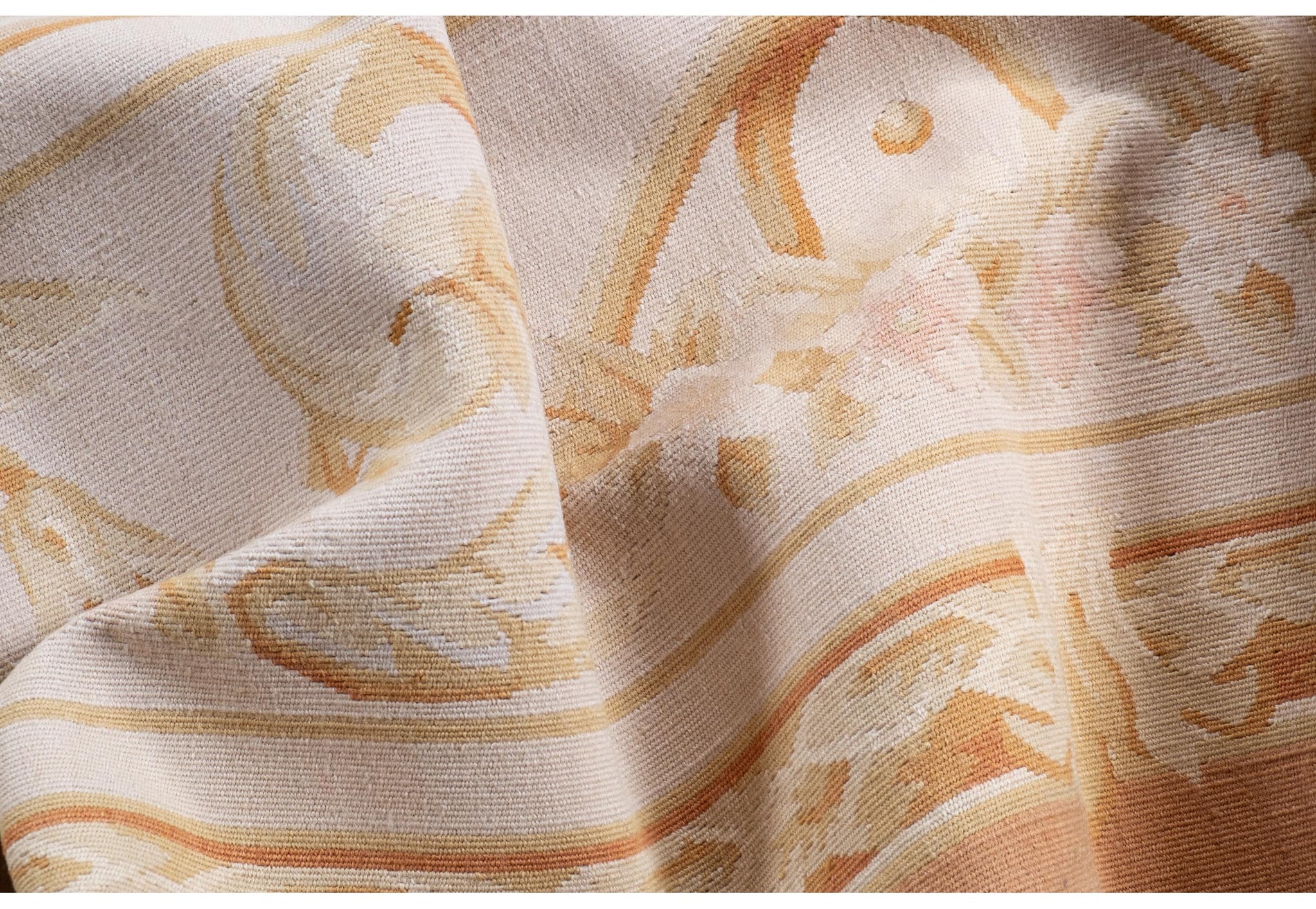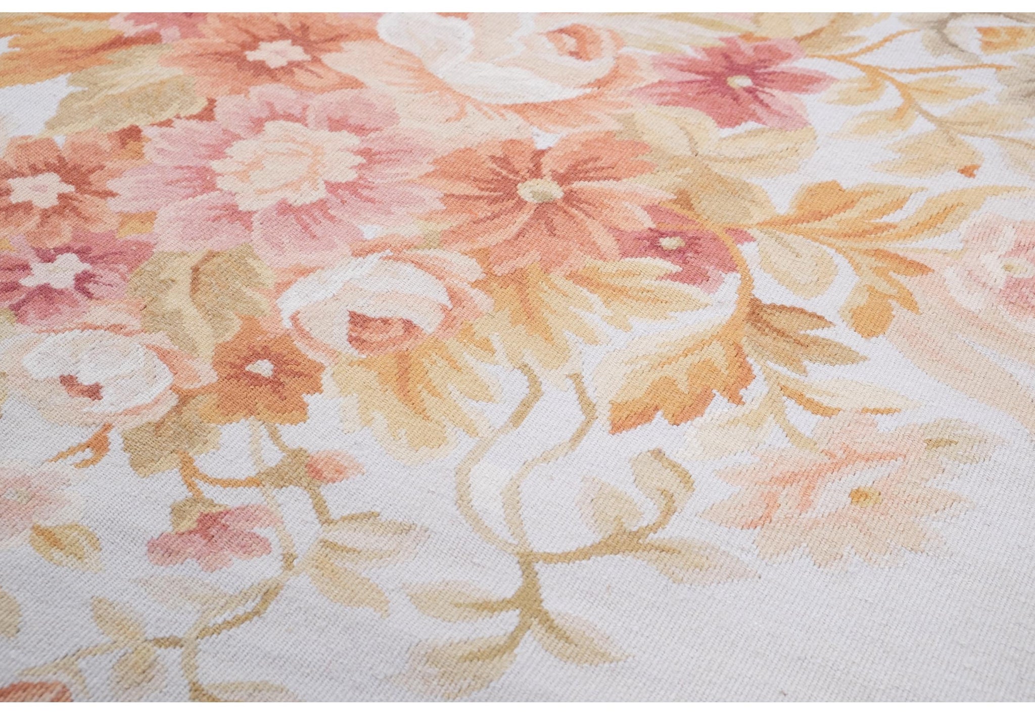 Alla metà dell’800 quando, per vari motivi, i famosi tappeti Savonerie non erano molto disponibili in Europa e in particolare in Francia, si è cominciato a produrre tappeti con gli stessi disegni ma senza pelo ossia con il nodo piatto. Erano tessuti da pavimento di grande taglio ricamati con disegni tendenzialmente rinascimentali