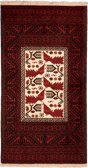 I tappeti Baluchi riflettono appieno le caratteristiche della vita nomade della popolazione locale: piccoli tagli, lana di capra usata sia come trama che come ordito, pochi colori e per lo più scuri, motivi geometrici che spesso circondano un'area chiara più vivace, quasi gusci di protezione per anime tenere