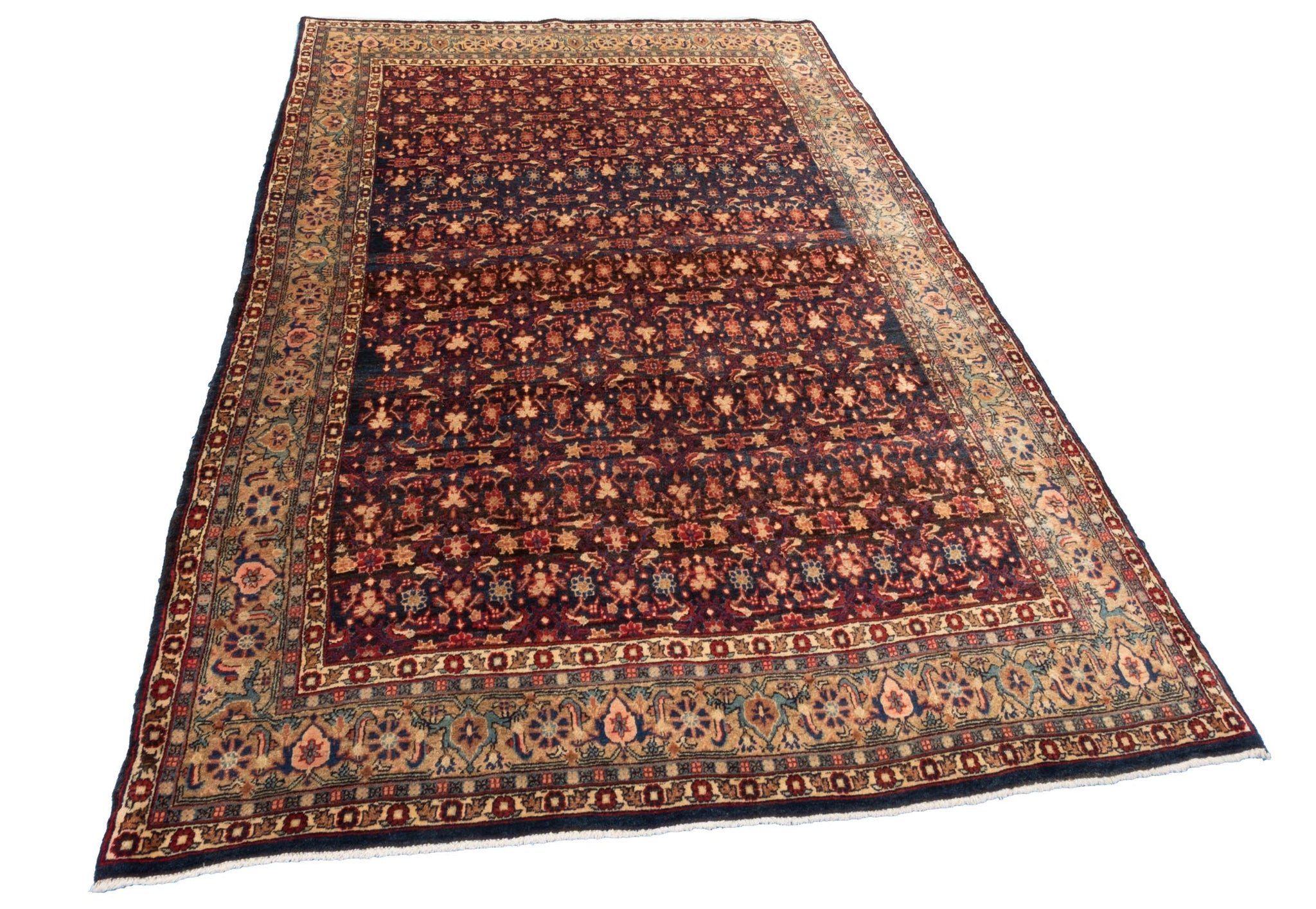 I suoi tappeti sono molto compatti con disegno tradizionalmente Herati (dette anche Pesce) ma dalla metà dell’800 hanno prodotto anche tappeti con disegni di gusto europeo.\nLa lana di alta montagna usata in questi tappeti gli danno una lucentezza molto particolare. \nCaratteristiche tecniche: Nodo simmetrico in lana, ordito in cotone, trama doppia in lana e cotone