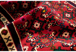 Sono tappeti di piccolo taglio e guide. Le variazioni sul tema del disegno “pesce” e i colori molto intensi rendono i loro tappeti immediatamente riconoscibili. Continuano a fare tappeti di buona qualità.\nCaratteristiche tecniche: Nodo simmetrico, ordito in cotone, doppia trama