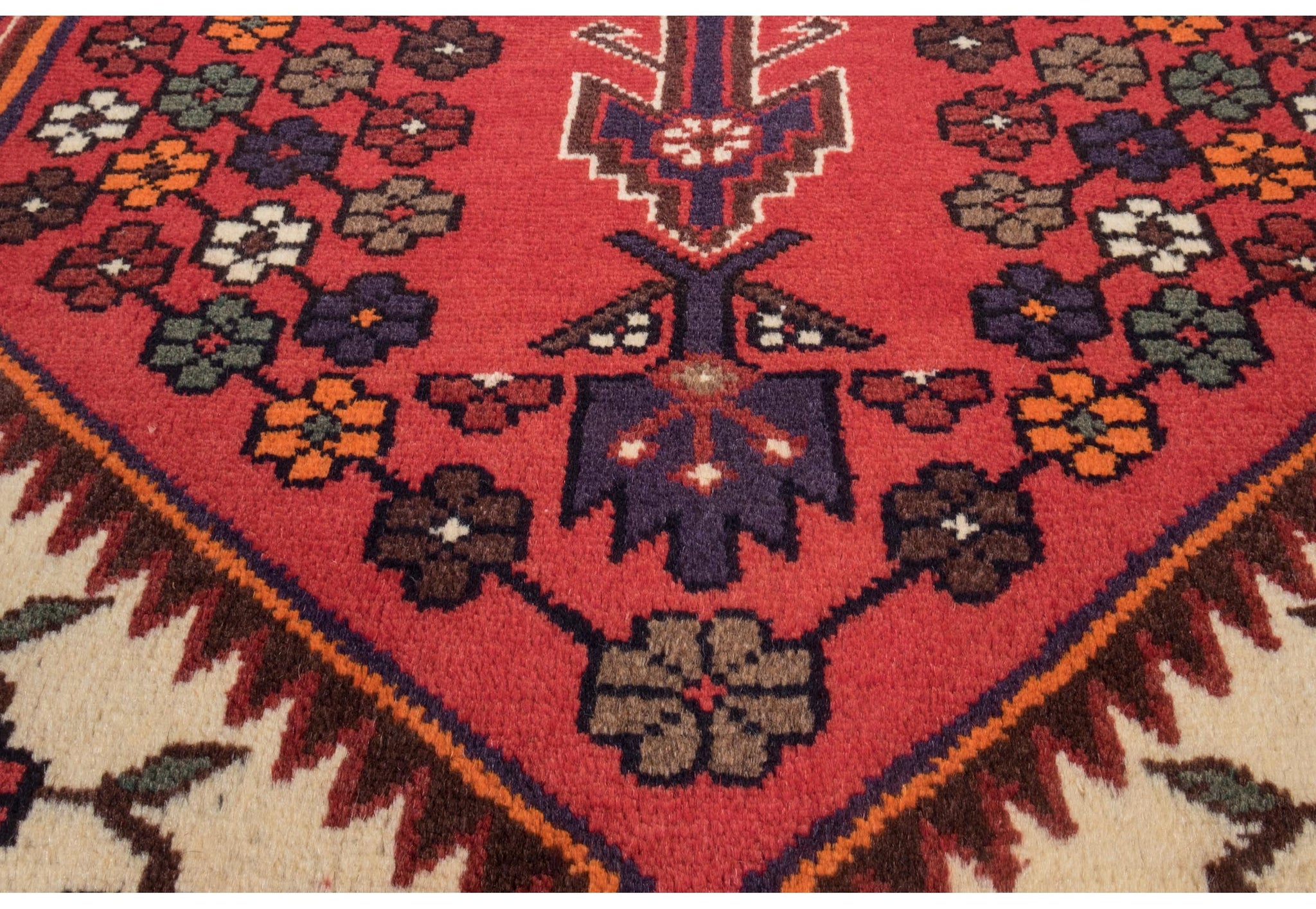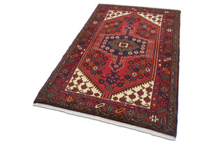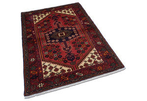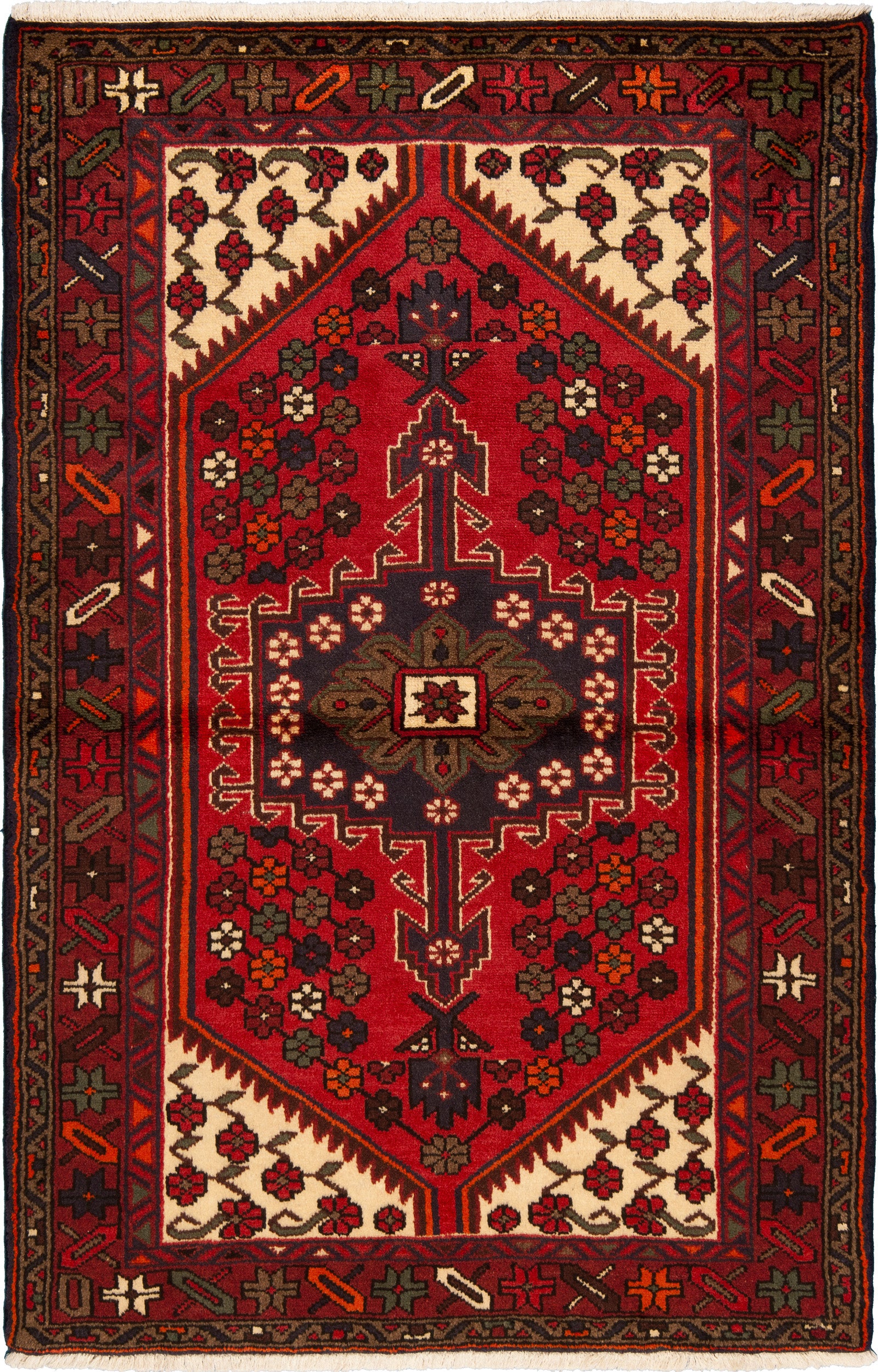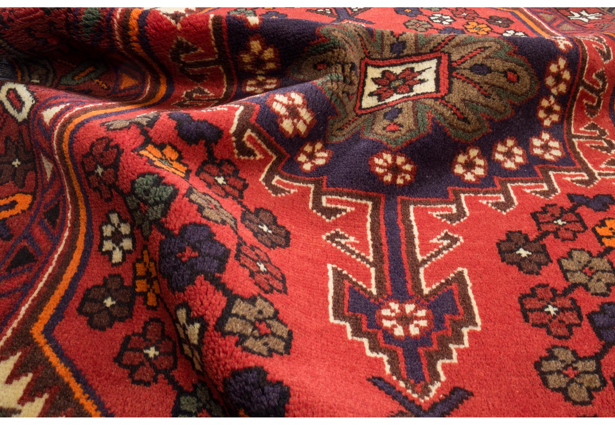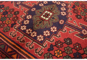tappeti di Hamedan, originariamente classificati come rurali perché principalmente prodotti da contadini per uso proprio, nell’ultimo secolo e sotto la spinta dei mercati internazionali sono diventati più fini; i più elaborati hanno assunto anche il nome di Hamedan Shahr Baft (annodato in città).\nCaratteristiche tecniche: Nodo simmetrico, ordito in cotone, trama singola e doppia