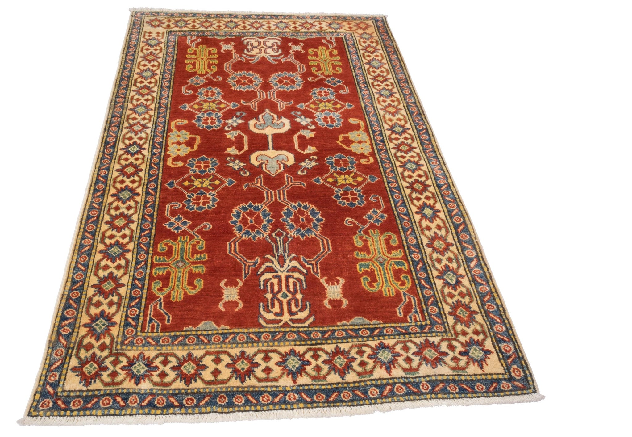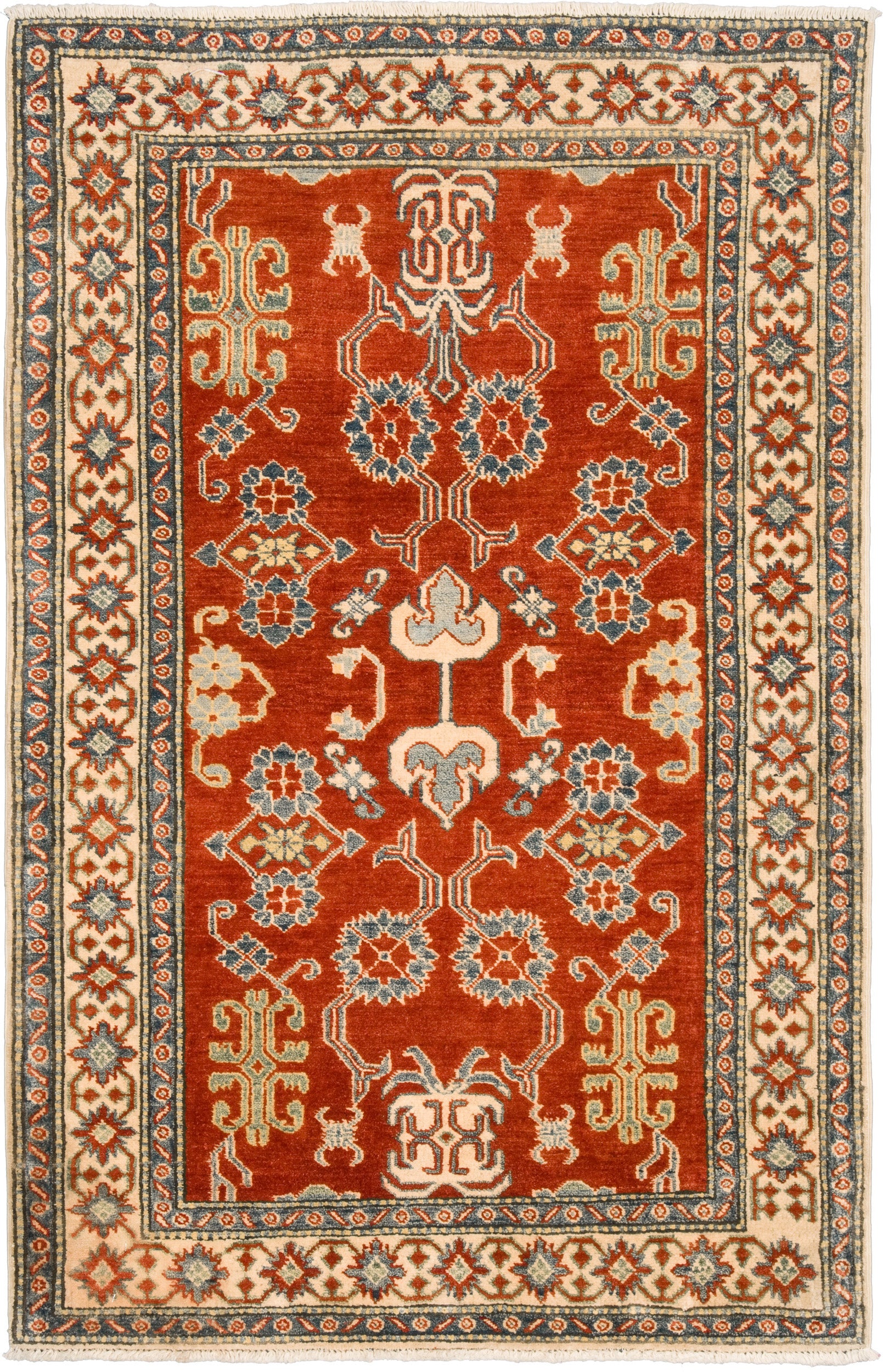 IL nome Kazak (Caucasico) indica tappeti con disegni concepiti interpretando in chiave moderna i disegni caucasici. E' prodotto in diverse categorie totalmente in lana con colori vegetali. \nE' un prodotto Afghano-Pakistano