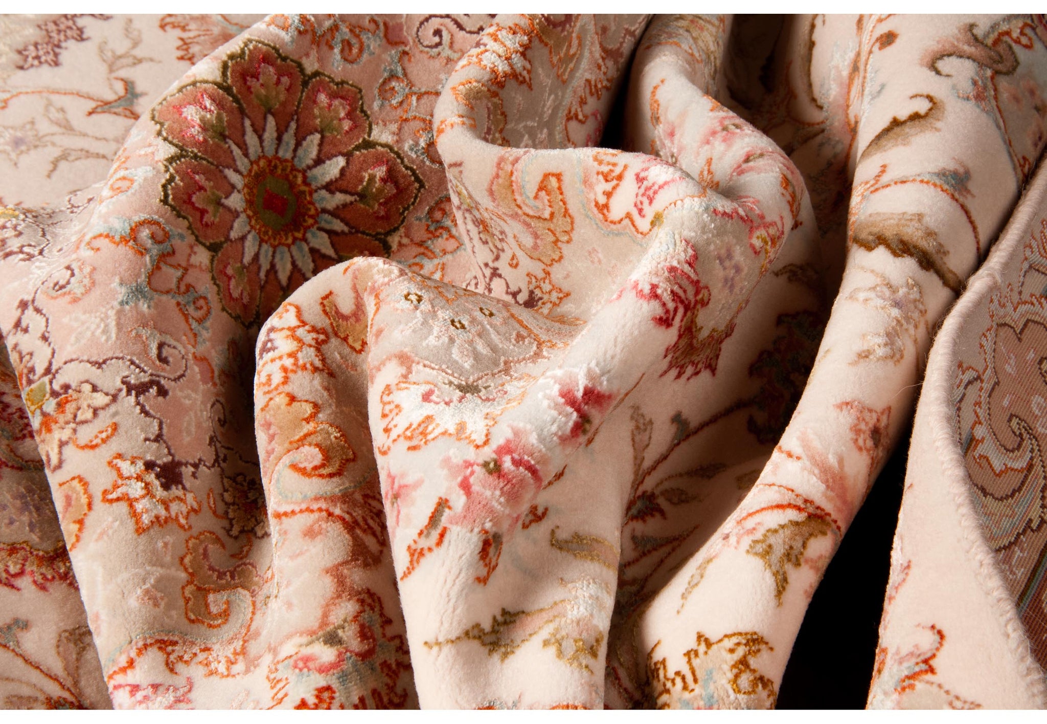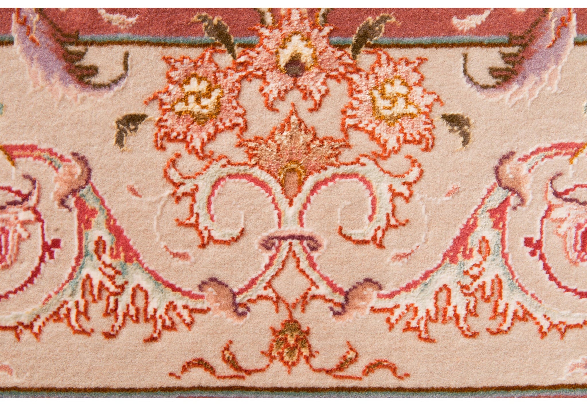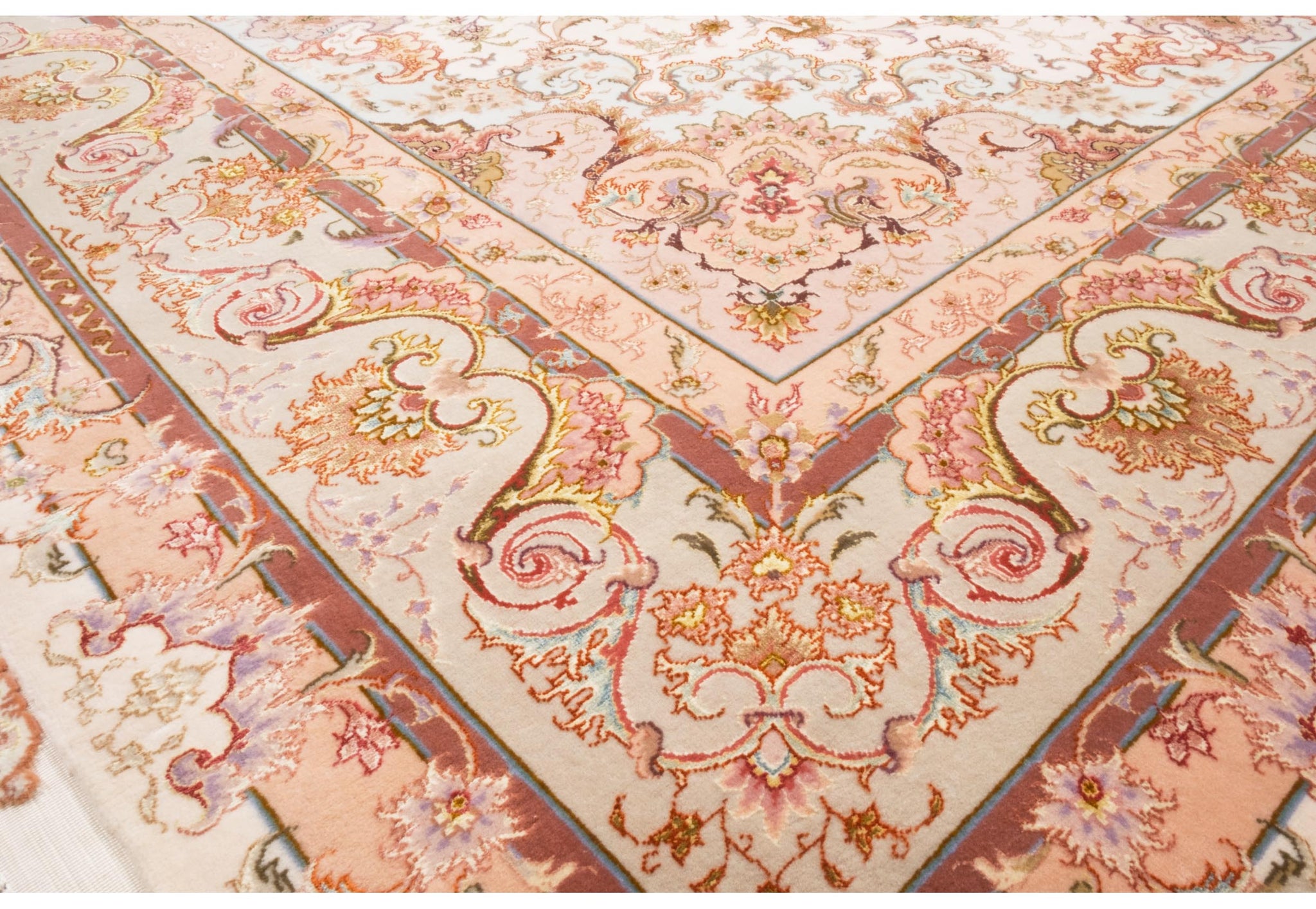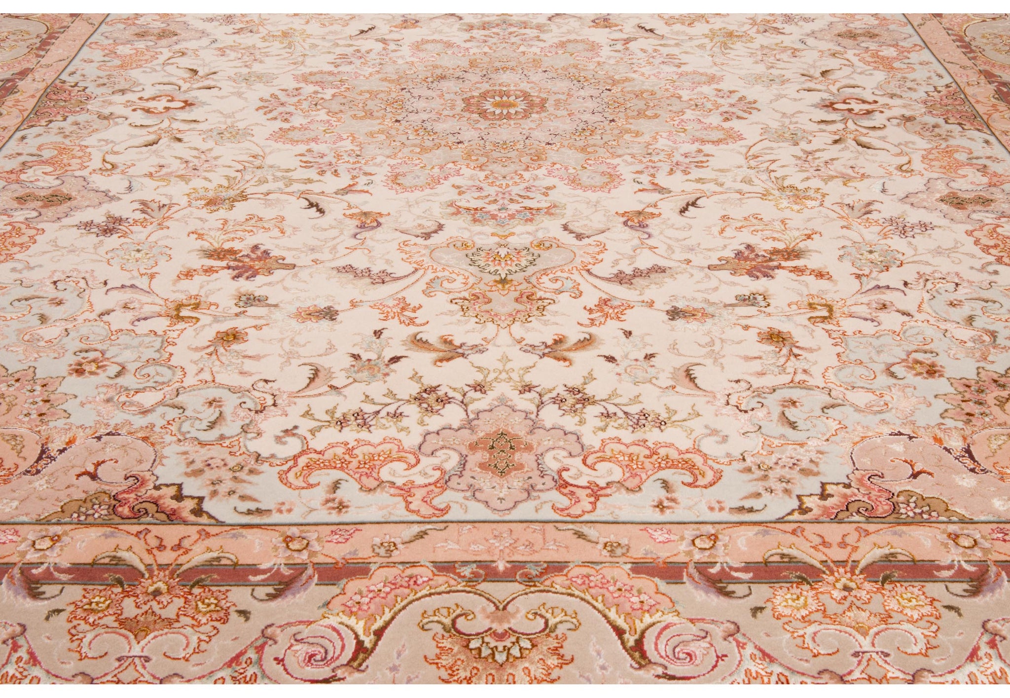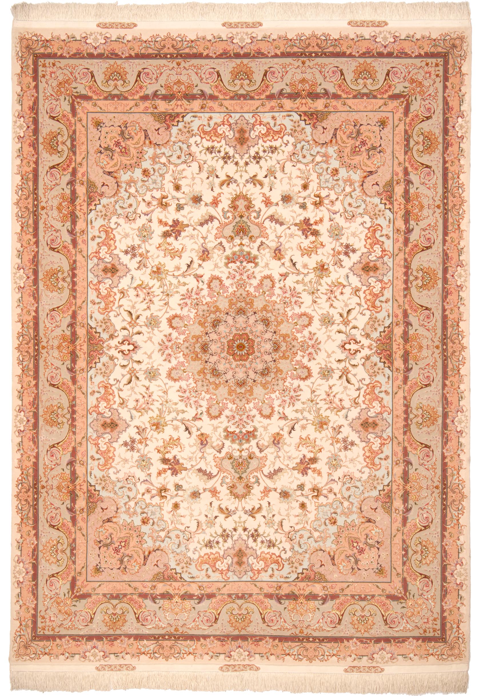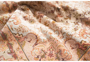Tabriz antica città nel nord dell'Iran dove l'arte dell'annodatura del tappeto ha raggiunto livelli altissimi.\nCaratteristiche tecniche: Nodo simmetrico in lana e anche lana Kork e seta, trama in cotone e ordito in cotone o seta